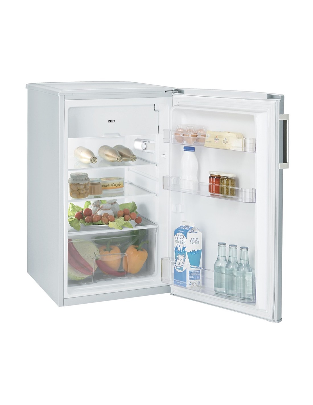 Candy CCTOS 502WH Frigo tavolo. Posizionamento dell'apparecchio: Libera installazione, Colore del prodotto: Bianco, Cerniera porta: Destra. Capacità netta totale: 97 L, Emissione acustica: 40 dB, Sistema di raffreddamento: Statico. Capacità netta frigorifero: 84 L, Tipo di lampada: LED. Posizione del congelatore: Posto in alto, Capacità netta congelatore: 13 L, Capacità di congelamento: 2 kg/24h. Consumo energetico annuo: 171 kWh, Consumo d'energia: 0,47 kWh/24h, Tensione di ingresso AC: 220 - 240 V