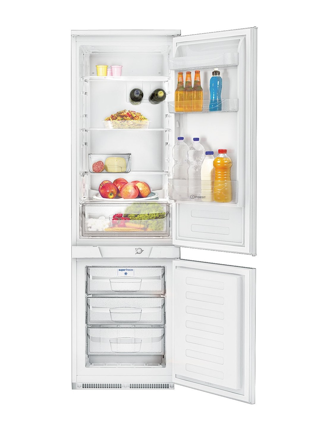 Indesit IN CB 31 AAA. Capacità netta totale: 255 L. Cerniera porta: Destra. Classe climatica: N-T, Emissione acustica: 36 dB. Capacità netta frigorifero: 198 L, Luce interna, Numero di ripiani frigorifero: 4, Numero di cassetti per verdura: 1. Capacità netta congelatore: 57 L, Capacità di congelamento: 2 kg/24h. Consumo energetico annuo: 217 kWh. Colore del prodotto: Bianco