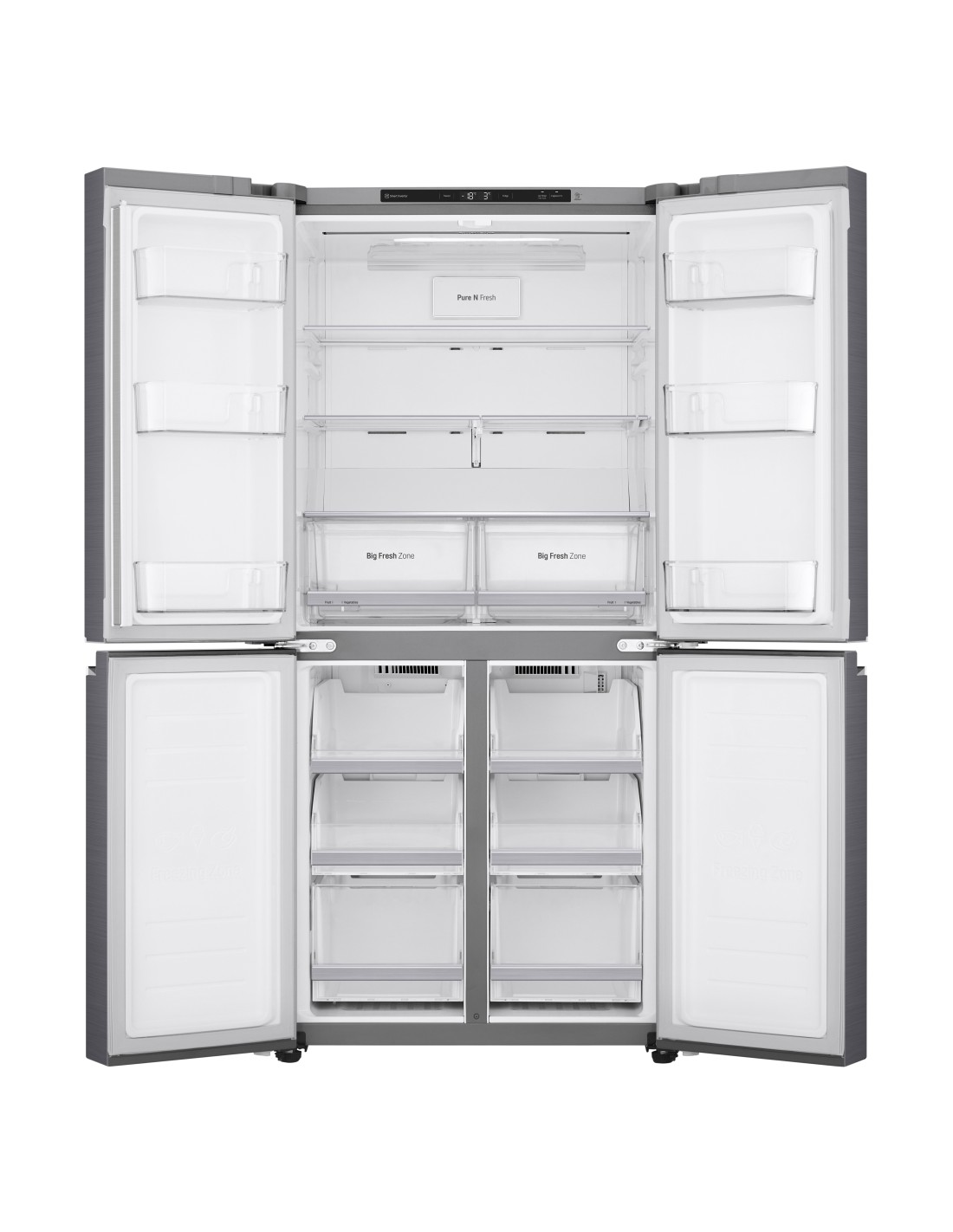 LG GMB844PZFG. Posizionamento dell'apparecchio: Libera installazione, Design del prodotto: Porta francese, Colore del prodotto: Metallico, Argento. Capacità netta totale: 530 L, Classe climatica: T, Classe emissione rumore: C. Capacità netta frigorifero: 321 L, Capacità lorda frigorifero: 344 L, Variabile di temperatura frigo: 1 - 7 °C. Capacità netta congelatore: 209 L, Posizione del congelatore: Posto in basso, Capacità di congelamento: 6,5 kg/24h. Lunghezza cavo: 1,9 m