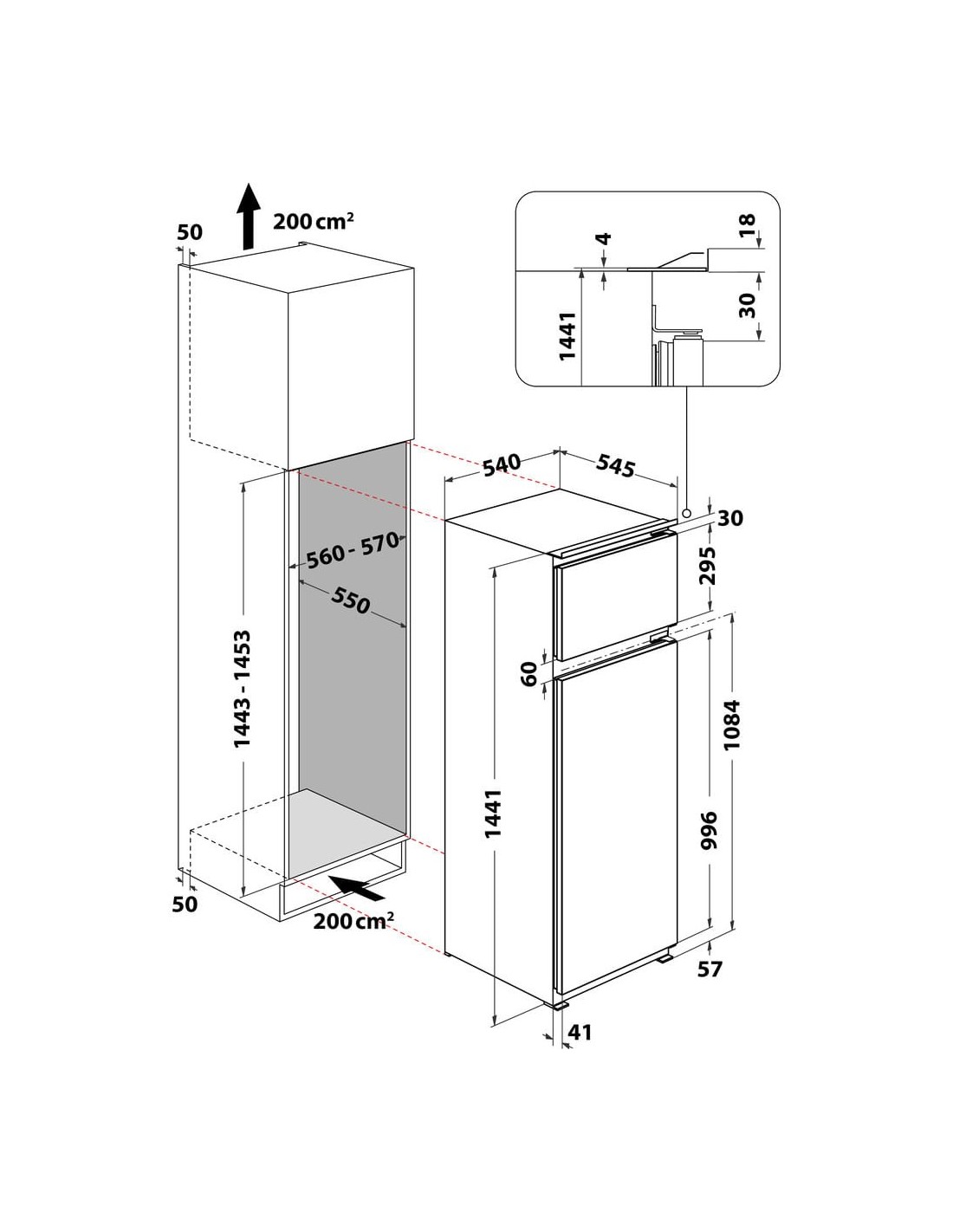 | Altezza del compartimento | 144,3 cm |