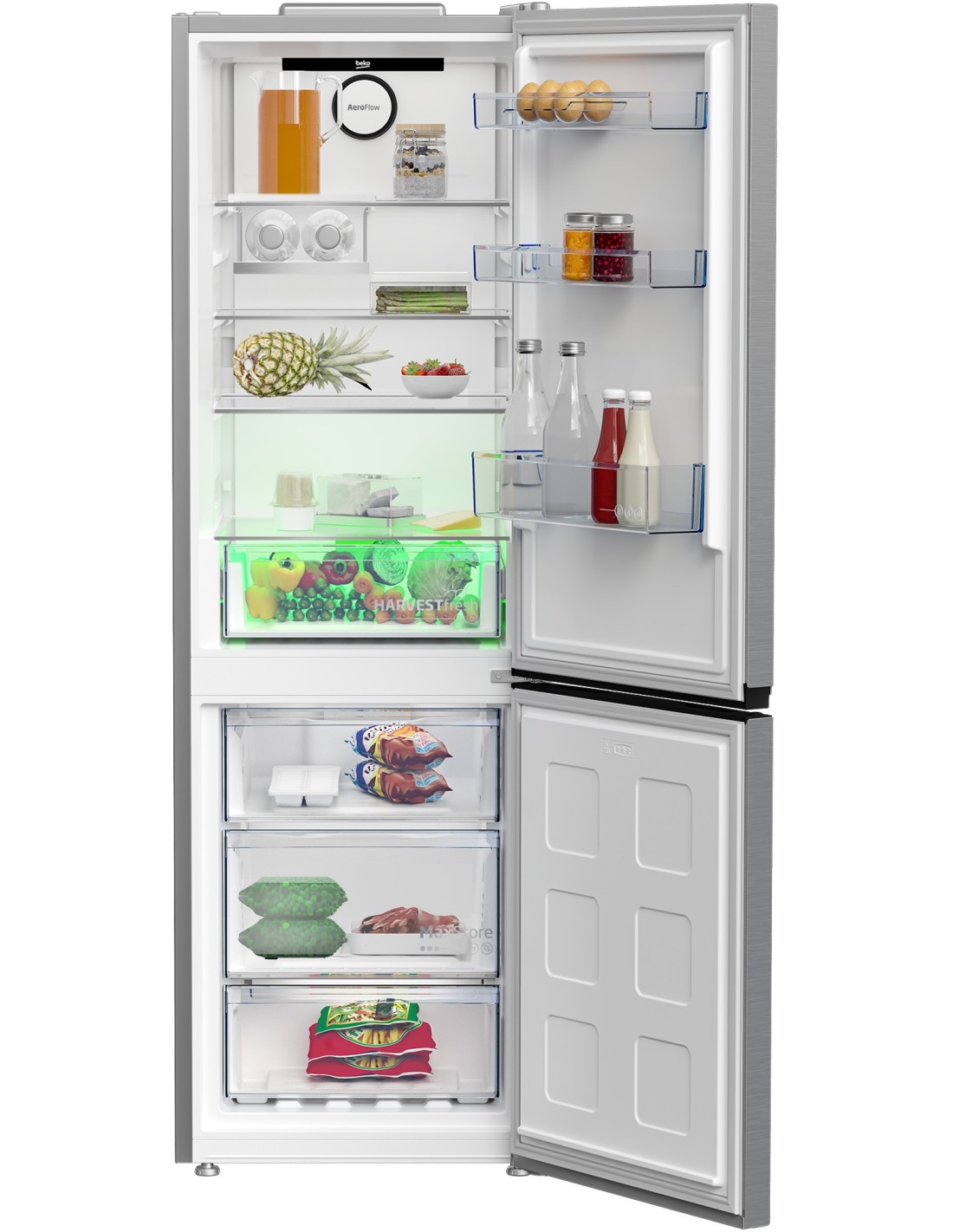 Beko B5RCNE365HXB. Capacità netta totale: 316 L. Cerniera porta: Destra. Classe climatica: SN-T, Emissione acustica: 35 dB. Capacità netta frigorifero: 210 L, No Frost (frigorifero), Luce interna, Numero di cassetti per verdura: 1. Capacità netta congelatore: 106 L, Capacità di congelamento: 6 kg/24h, No Frost (congelatore). Compartimento zona fresca. Classe efficienza energetica: D, Consumo energetico annuo: 206 kWh. Colore del prodotto: Metallico