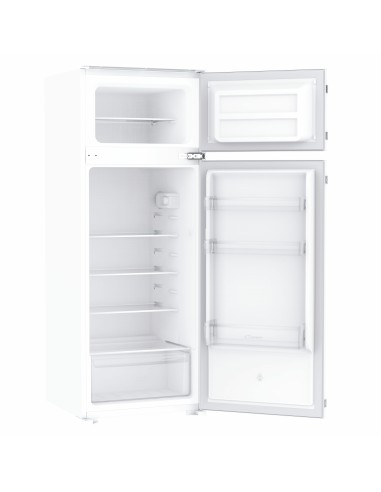Candy CFBD2450/2ESH. Capacità netta totale: 205 L. Cerniera porta: Destra. Classe climatica: Starfish, Emissione acustica: 39 dB. Capacità netta frigorifero: 169 L, Luce interna, Numero di ripiani frigorifero: 5, Numero di cassetti per verdura: 1. Capacità netta congelatore: 36 L. Classe efficienza energetica: E, Consumo energetico annuo: 175 kWh. Colore del prodotto: Bianco