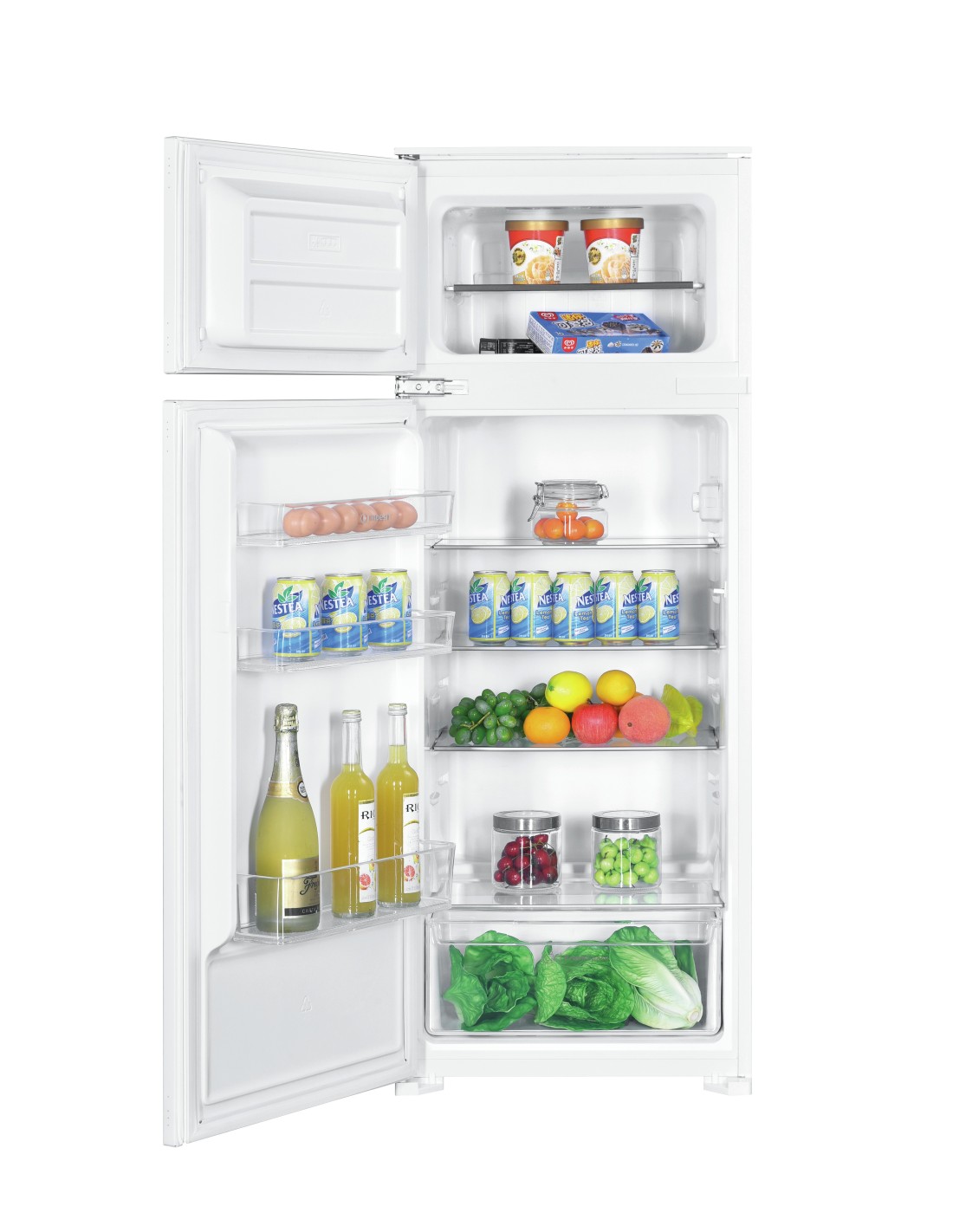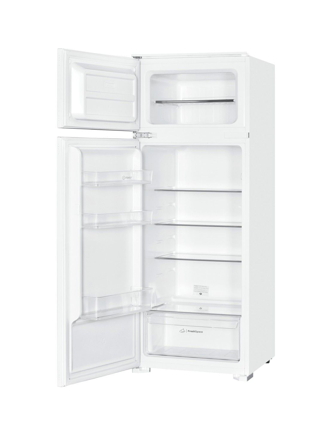 Indesit IN D 2040 E. Capacità netta totale: 205 L. Cerniera porta: Sinistra. Classe climatica: N-ST, Emissione acustica: 39 dB. Capacità netta frigorifero: 169 L, Luce interna, Numero di ripiani frigorifero: 4, Numero di cassetti per verdura: 1. Capacità netta congelatore: 36 L, Capacità di congelamento: 2,4 kg/24h. Compartimento zona fresca. Classe efficienza energetica: E, Consumo energetico annuo: 175 kWh. Colore del prodotto: Bianco