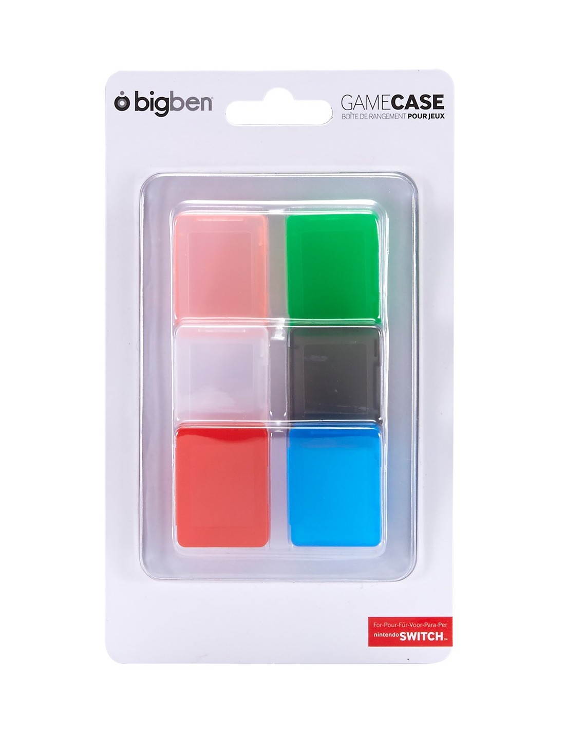 Bigben Interactive SWITCHGAMECASE. Tipo: Set, Piattaforma: Nintendo Switch, Colore del prodotto: Nero, Blu, Verde, Rosa, Rosso, Bianco. Larghezza imballo: 20 mm, Profondità imballo: 110 mm, Altezza imballo: 185 mm. Numero di prodotti inclusi: 1 pezzo(i). Ampiezza del pallet: 120 cm, Lunghezza del pallet: 80 cm, Altezza del pallet: 180 cm