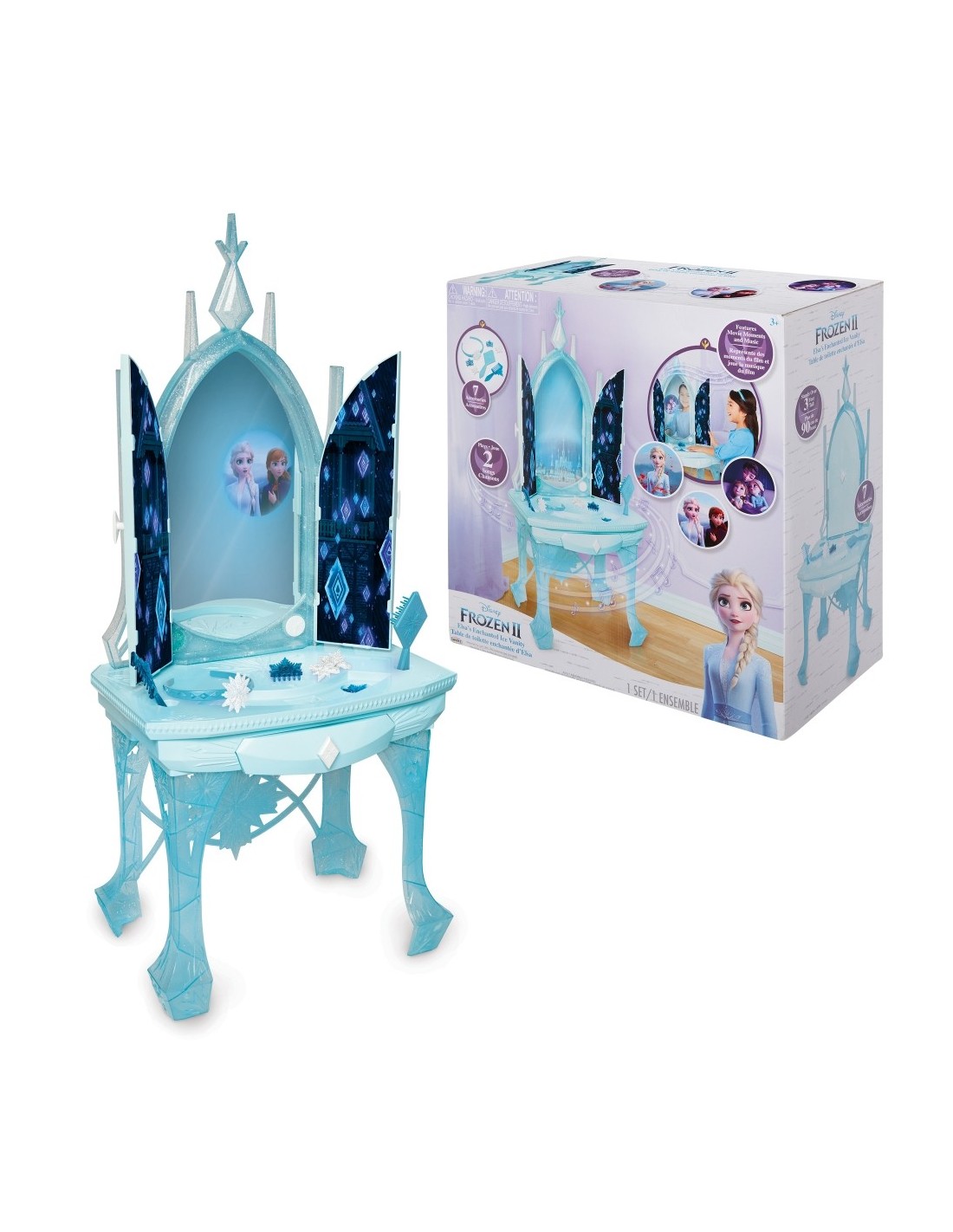 Una splendida specchiera trasparente e con glitter per immergersi nel mondo di Frozen. Apri le antine per scoprire tutta la magia di Arendelle con musiche e filmati! Tanti accessori inclusi!