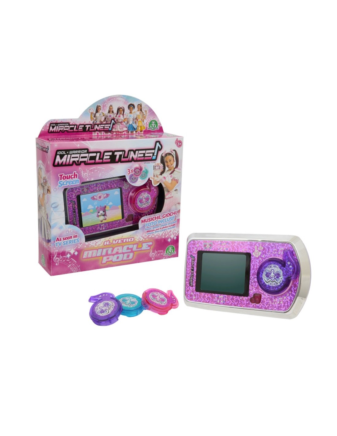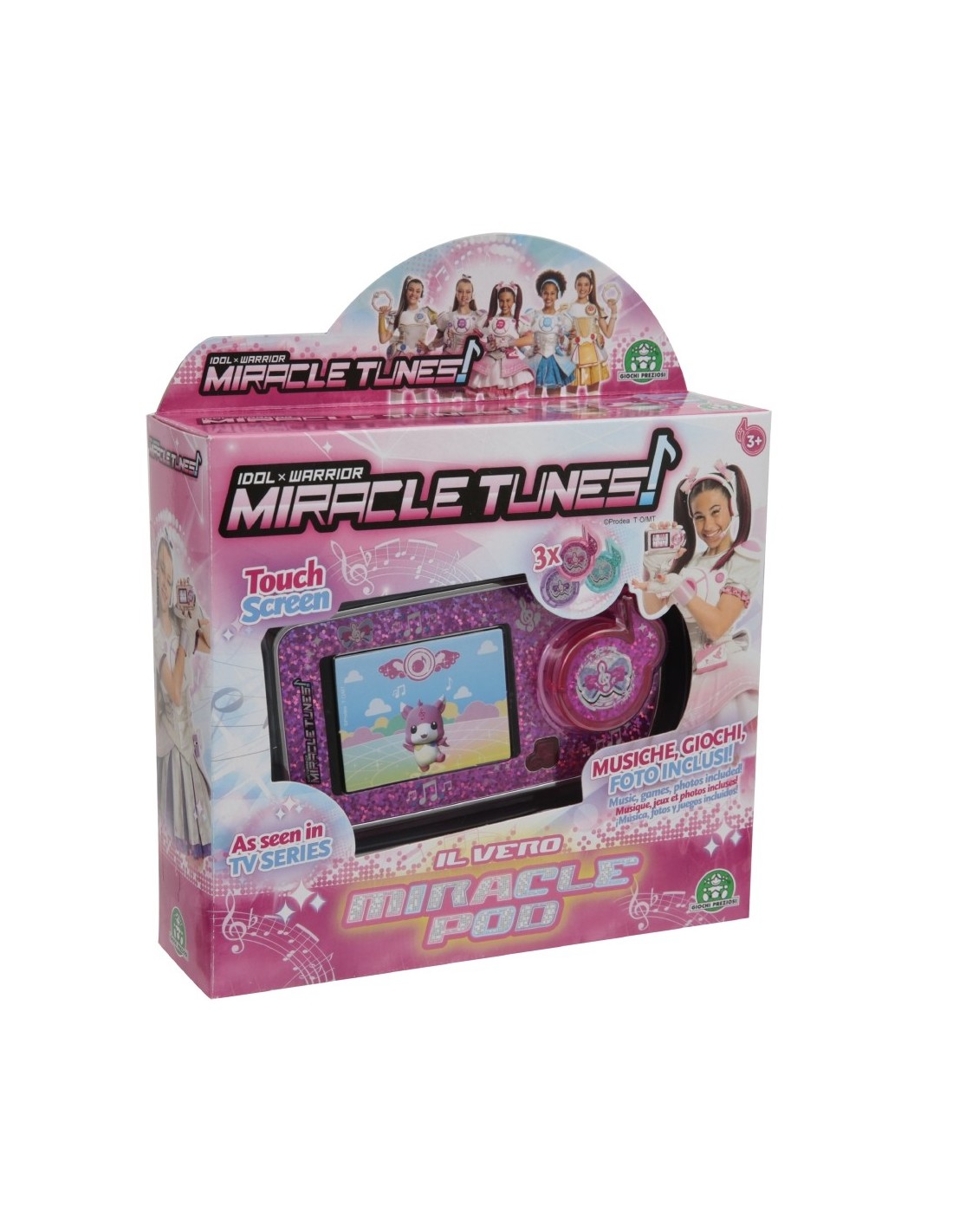 Diventa anche tu una vera Miracle Tunes con il Miracle Pod, l'elemento chiave della serie TV! Il Miracle Pod è lo speciale dispositivo che consente alle protagoniste, Emily, Julie e Jasmine di comunicare con i ritmi.