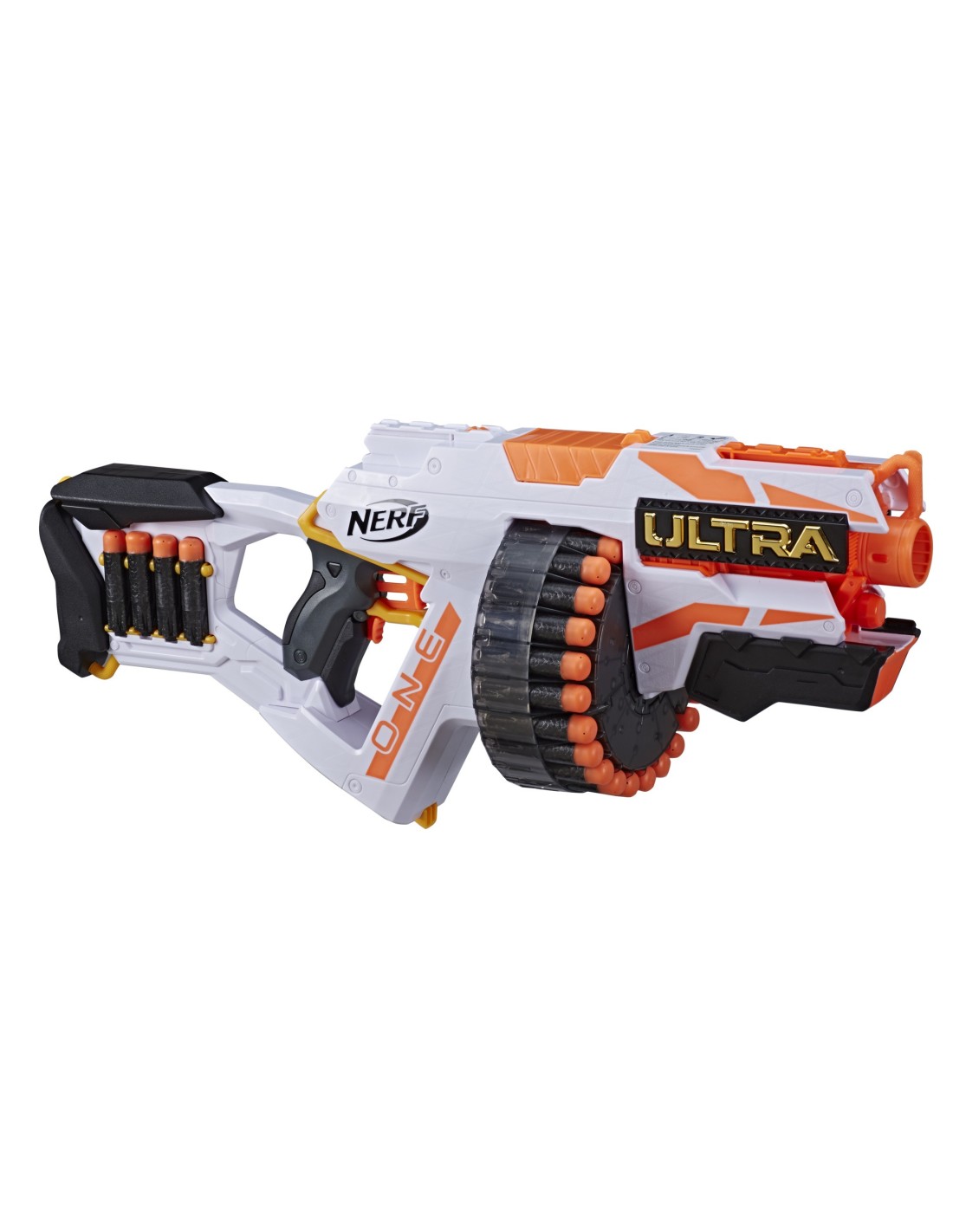 Nerf Fucile blaster motorizzato, Compatibile solo con freccette Ultra One. Tipo di prodotto: Blaster giocattolo, Età consigliata (min): 8 anno/i, Età consigliata (max): 99 anno/i, Colore del prodotto: Bianco, Oro, Polvere da sparo: 36 m, Materiali: Plastica. Peso: 1,42 kg
