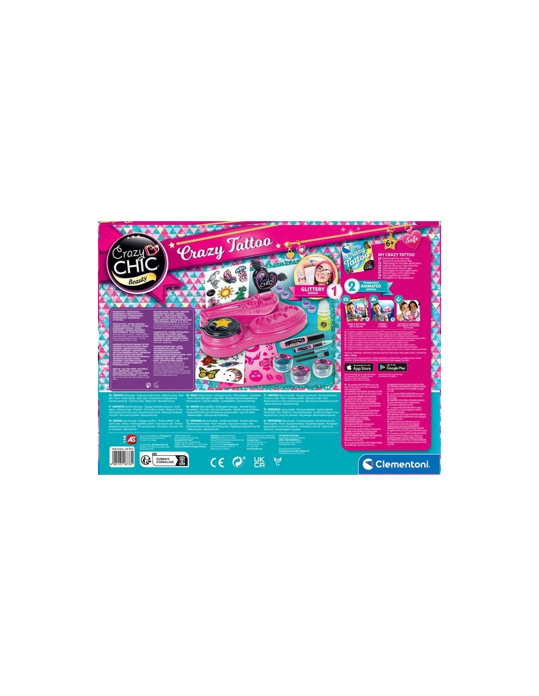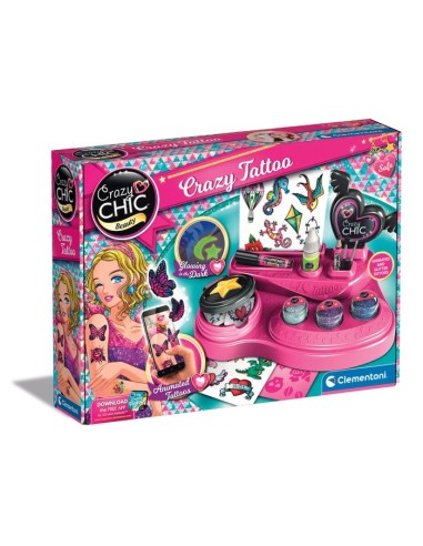 Per le fan dei tatuaggi è arrivato un kit super cool per realizzare tattoo trendy dai colori brillanti e dall'effetto glow in the dark. Grazie al pratico banchetto con tantissimi accessori sarà davvero facile dare spazio alla fantasia e alla creatività. Il prodotto contiene stencil adesivi, glitter colorati e colorante per il corpo effetto Glow in the Dark. In esclusiva per tutte le Crazy girls nel banchetto ci sono anche tanti fantastici tattoo con realtà aumentata. Con la Crazy Tattoo App, i tatuaggi diventano magicamente tridimensionali. Puoi fotografarli, personalizzarli e soprattutto condividerli con le amiche attraverso i canali social più trendy! Ideato, progettato e sviluppato in Italia.