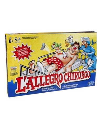 Il gioco più amato dai giovanissimi medici! Munisciti di polso fermo e nervi d’acciaio e sfida i tuoi amici a misurarsi con le operazioni chirurgiche più delicate, bizzarre e divertenti. Pesca una carta, impugna le pinzette chirurgiche e prova ad estrarre dal corpo del paziente la parte dolorante. Ma attenzione a non sfiorare i bordi metallici delle cavità all’interno del corpo perché il paziente inizierà a lamentarsi e il suo naso rosso si illuminerà e comincerà a ronzare.