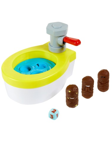 Acchiappa la Cacca Turbo triplica il divertimento con 3 pezzi di cacca! Acchiappa la Cacca era già fantastico, ma aveva solo una cacca. Con Acchiappa la Cacca Turbo ne trovi ben tre! Ogni giocatore tira il dado e poi lo sciacquone, tutte le volte indicate dal dado. Il livello dell'acqua SALE ogni volta che si tira lo sciacquone. Ma attenzione! Quando diventa troppo alto, rischia di traboccare e lanciare per aria la cacca! Come nel gioco della sedia, c'è sempre un giocatore in più rispetto ai pezzi di cacca, perciò i bambini devono acchiappare la cacca per restare in gioco! Quando i giocatori rimasti sono due, quello che cattura l'ultima cacca VINCE! Un fantastico regalo per bambini dai 5 anni in su. Colori e decorazioni possono variare.