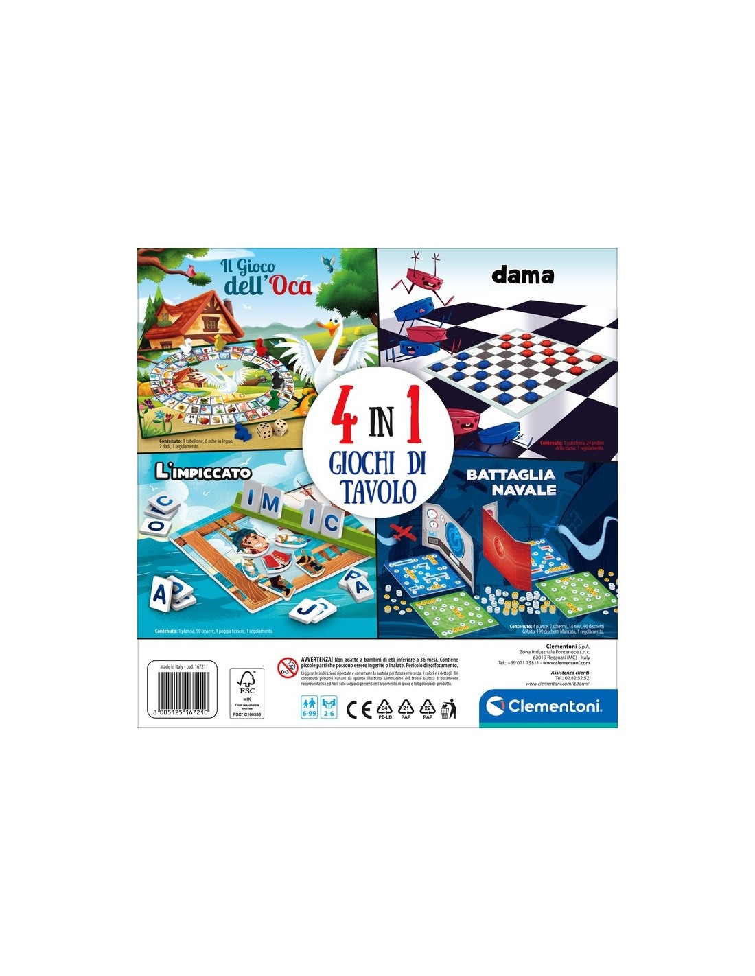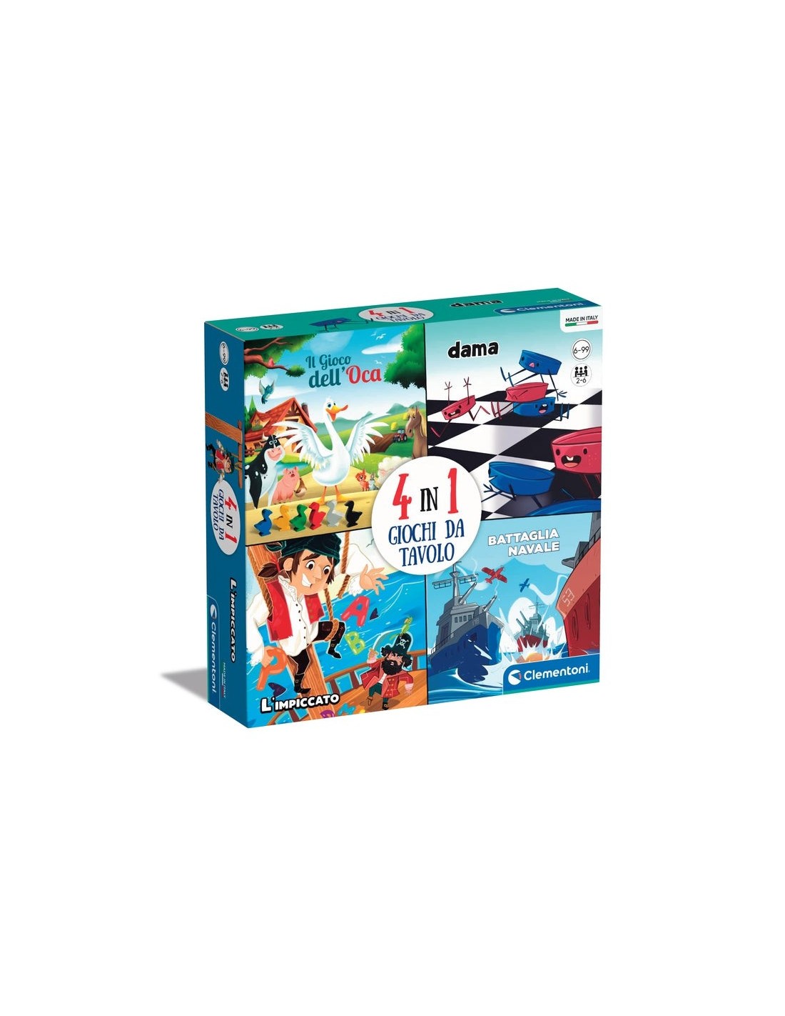 Clementoni 4 in 1 Giochi Da Tavolo. Tipo di prodotto: Gioco da tavolo, Genere: Multi genere, Età consigliata (min): 6 anno/i, Gioco di famiglia
