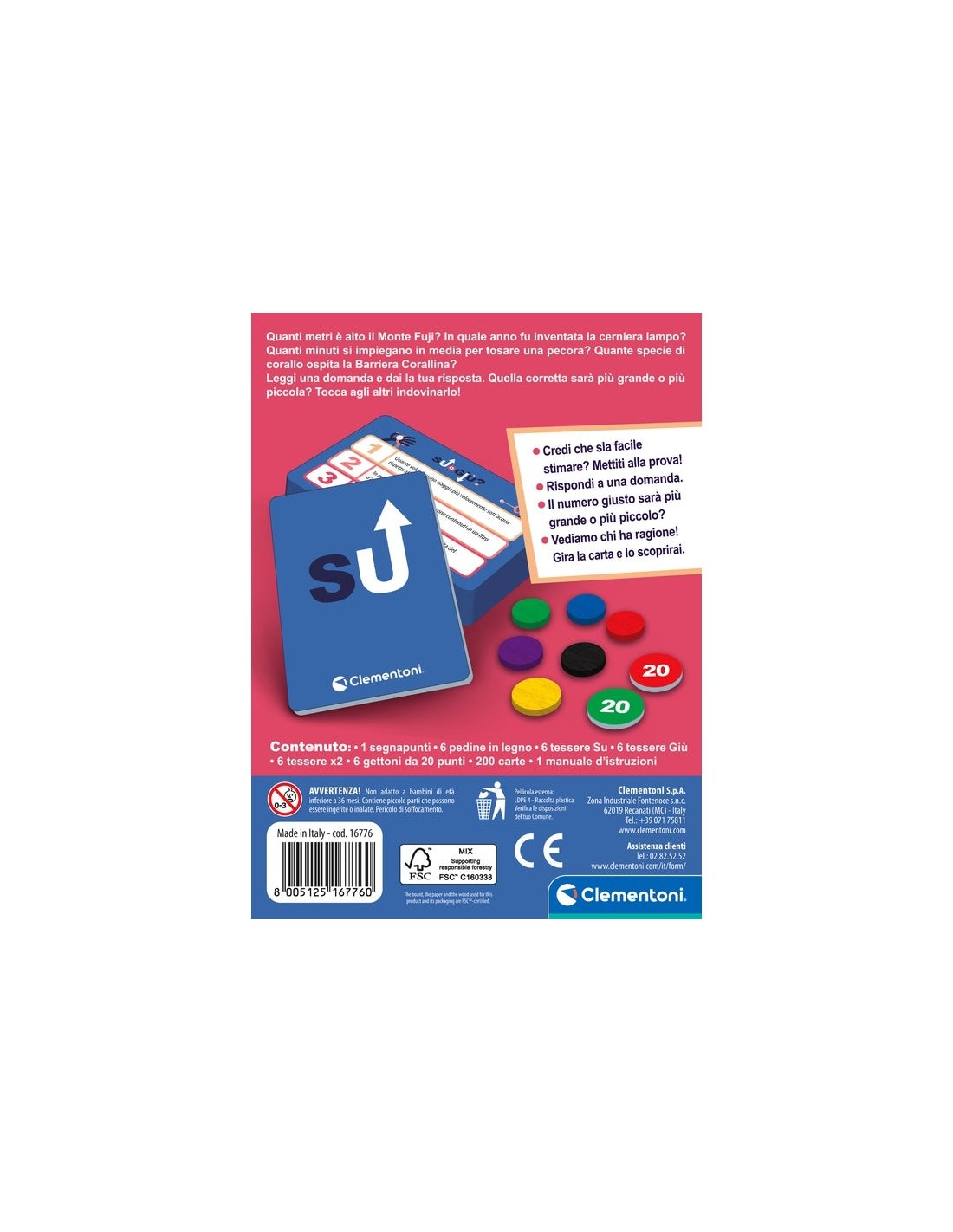 Clementoni SU O GIÙ. Tipo di prodotto: Carta da gioco, Genere: Tradizionale, Età consigliata (min): 12 anno/i, Tempo di gioco: 30 min, Gioco di famiglia