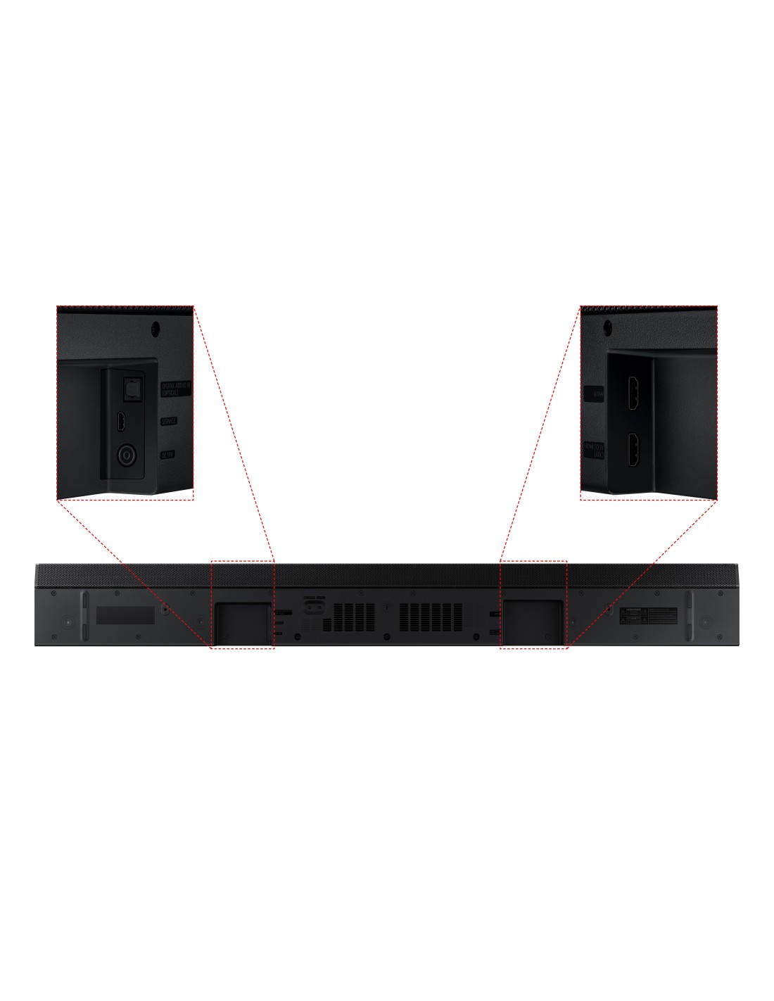 La soundbar si sincronizza con il tuo TV Samsung, per dare vita a un’esperienza audio immersiva. Combina e amplifica i suoni attraverso gli altoparlanti della soundbar e del TV, regalandoti un nuovo livello di immersione acustica, per godere dei contenuti in modo mai sperimentato prima.