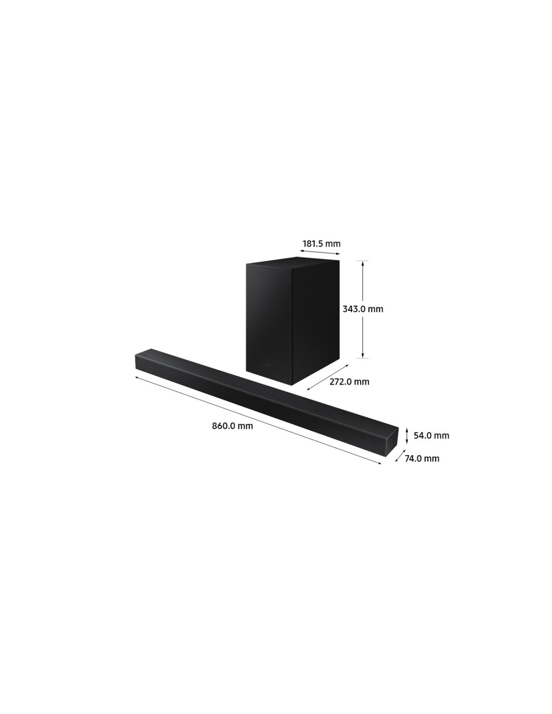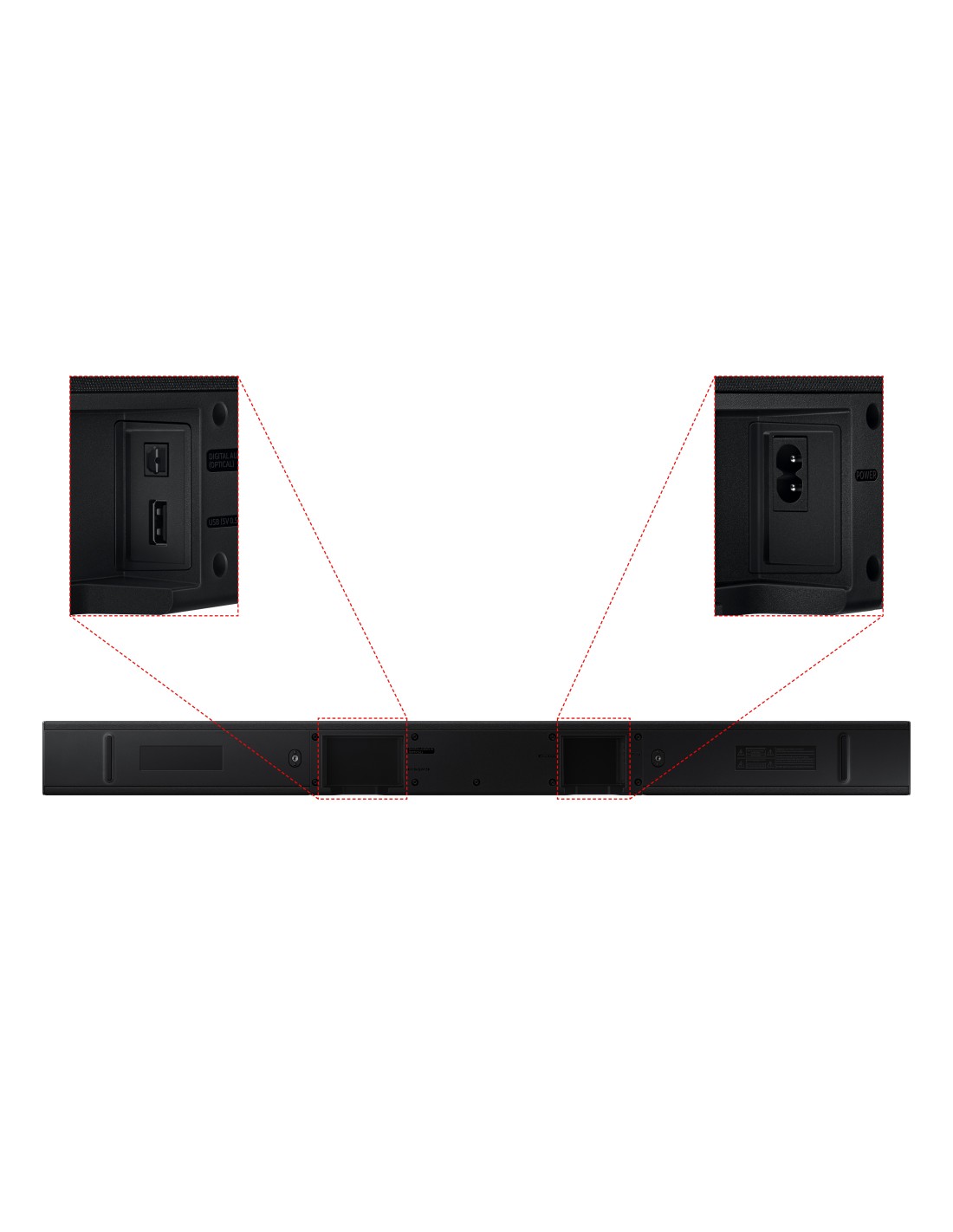 Samsung HW-A450. Sistema audio: 2.1 canali, Potenza in uscita (RMS): 300 W, Formato audio integrato: Dolby Atmos, Dolby Digital Plus, Dolby TrueHD. Connettività del subwoofer: Wireless. Colore del prodotto: Nero, Formati audio supportati: AAC, AIFF, ALAC, FLAC, MP3, OGG, WAV. Tecnologia di connessione: Con cavo e senza cavo, Codec Bluetooth: SBC. Consumo energetico del soundbar: 25 W, Consumo subwoofer: 40 W, Consumi (modalità stand-by): 0,5 W