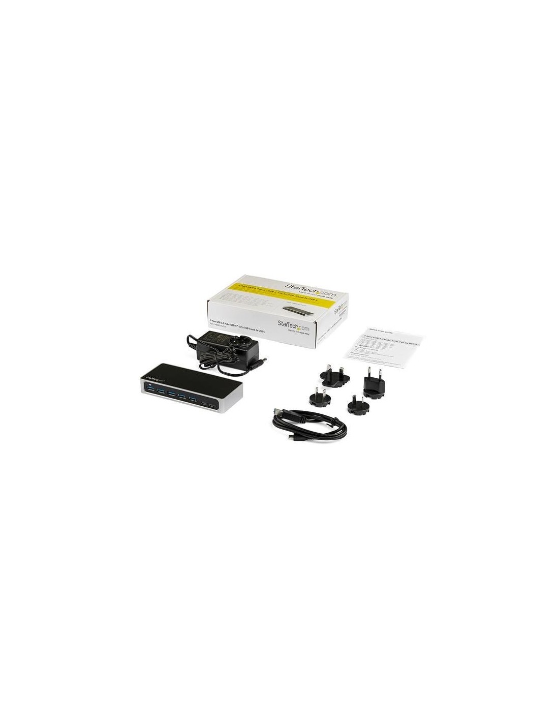 StarTech.com Hub USB-C a 7 porte - 5x USB-A + 2 USB-C - USB 3.0 - Hub Alimentato. Interfaccia host: USB 3.2 Gen 1 (3.1 Gen 1) Type-B, Interfacce hub: USB 3.2 Gen 1 (3.1 Gen 1) Type-A, USB 3.2 Gen 1 (3.1 Gen 1) Type-C. Velocità di trasferimento dati: 5000 Mbit/s, Colore del prodotto: Nero, Argento, Materiale della scocca: Plastica. Consumi: 48 W, Voltaggio di ingresso: 100 - 240 V, Corrente d'ingresso: 1 A. Larghezza: 65 mm, Profondità: 149 mm, Altezza: 24 mm. Larghezza imballo: 149 mm, Profondità imballo: 213 mm, Altezza imballo: 51 mm