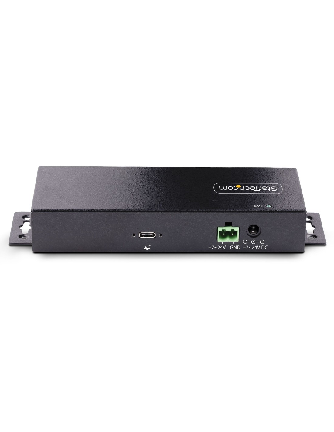 Questo versatile hub può essere alimentato tramite l'adattatore di alimentazione universale incluso o la morsettiera da 7-24 V CC, che lo rende ideale per ambienti industriali o dove le prese di corrente standard possono essere limitate.