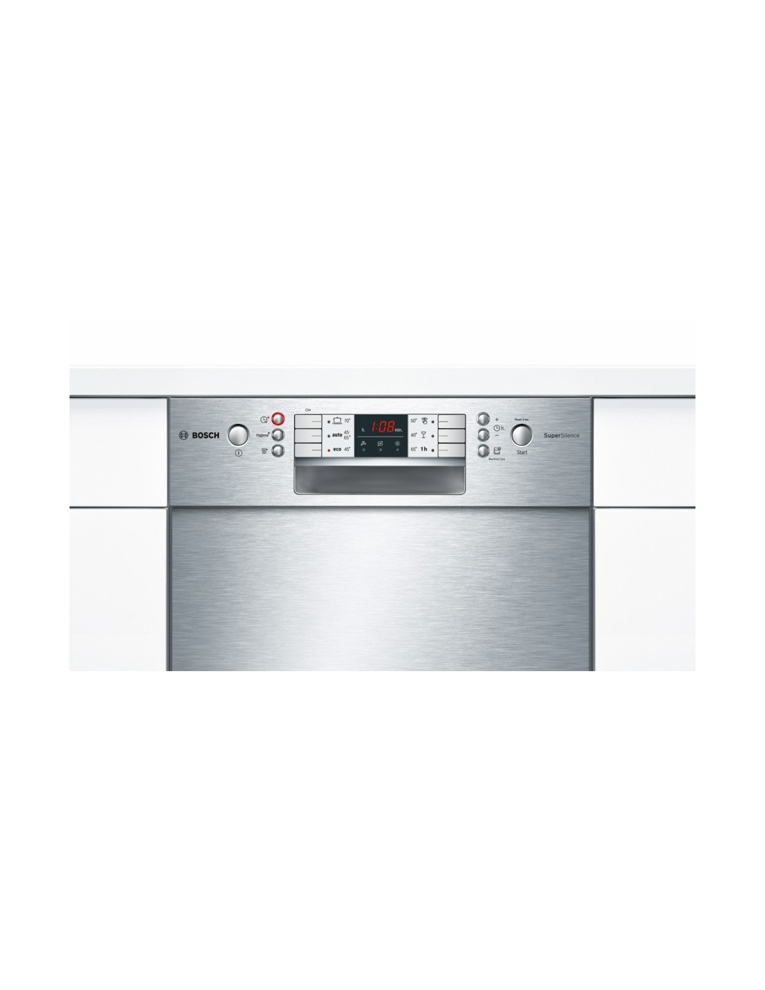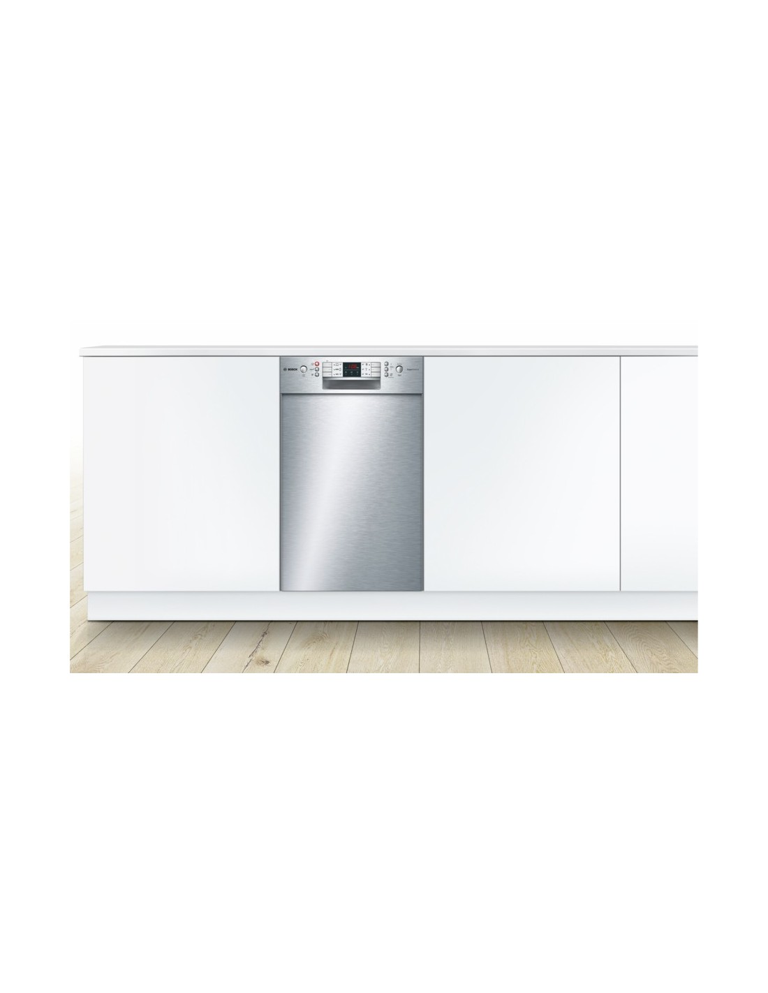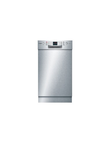 Bosch Serie 4 SPU46MS01E. Posizionamento dell'apparecchio: Sottopiano, Dimensione: Compatta (45 cm), Colore della porta: Acciaio inossidabile. Numero di coperti: 10 coperti, Classe emissione rumore: B, Emissione acustica: 44 dB. Regolazione piedini: 6 cm. Classe efficienza energetica: F, Consumo di acqua per ciclo: 9,5 L, Consumo energetico per 100 cicli: 84 kWh. Larghezza: 448 mm, Profondità: 573 mm, Altezza: 815 mm