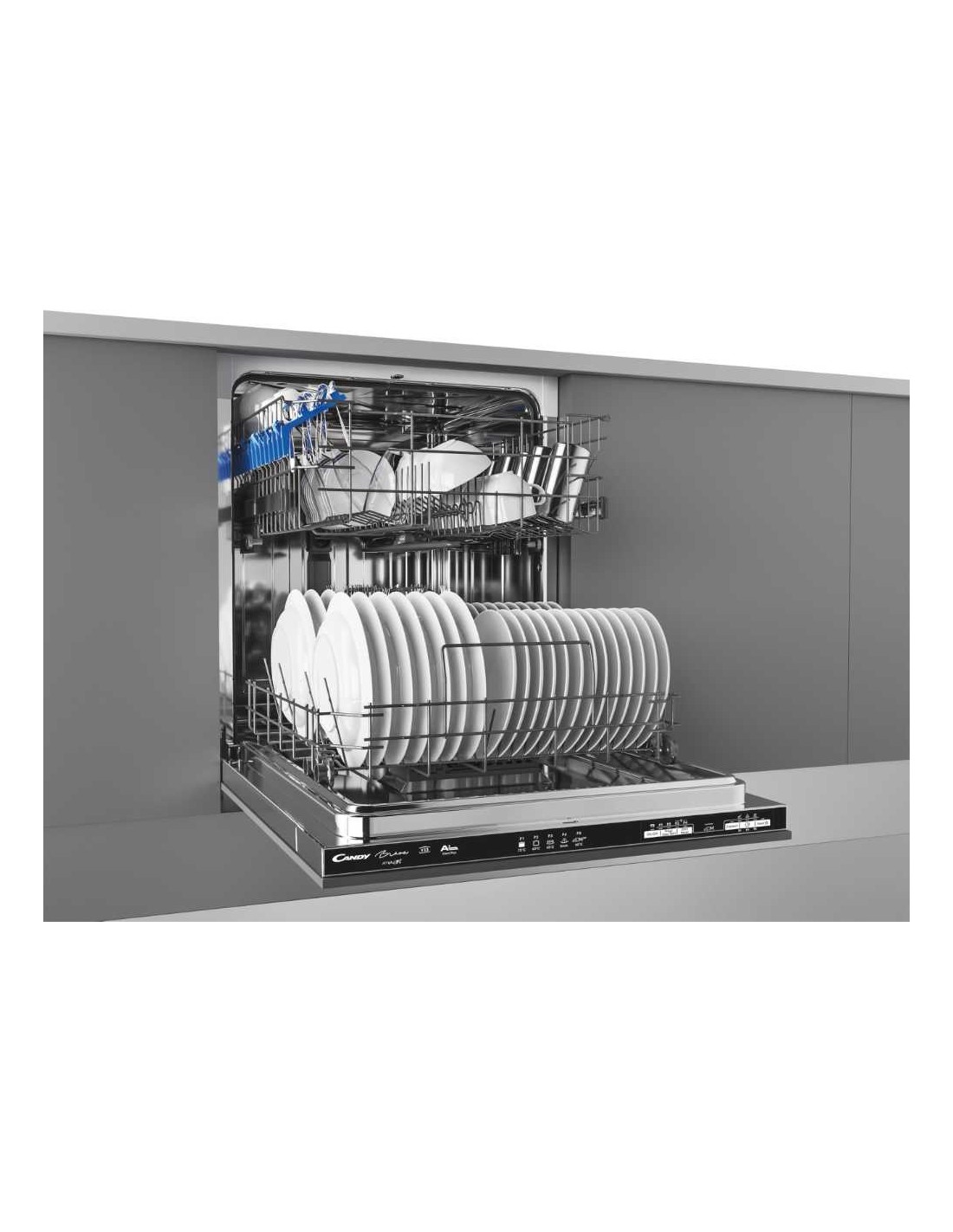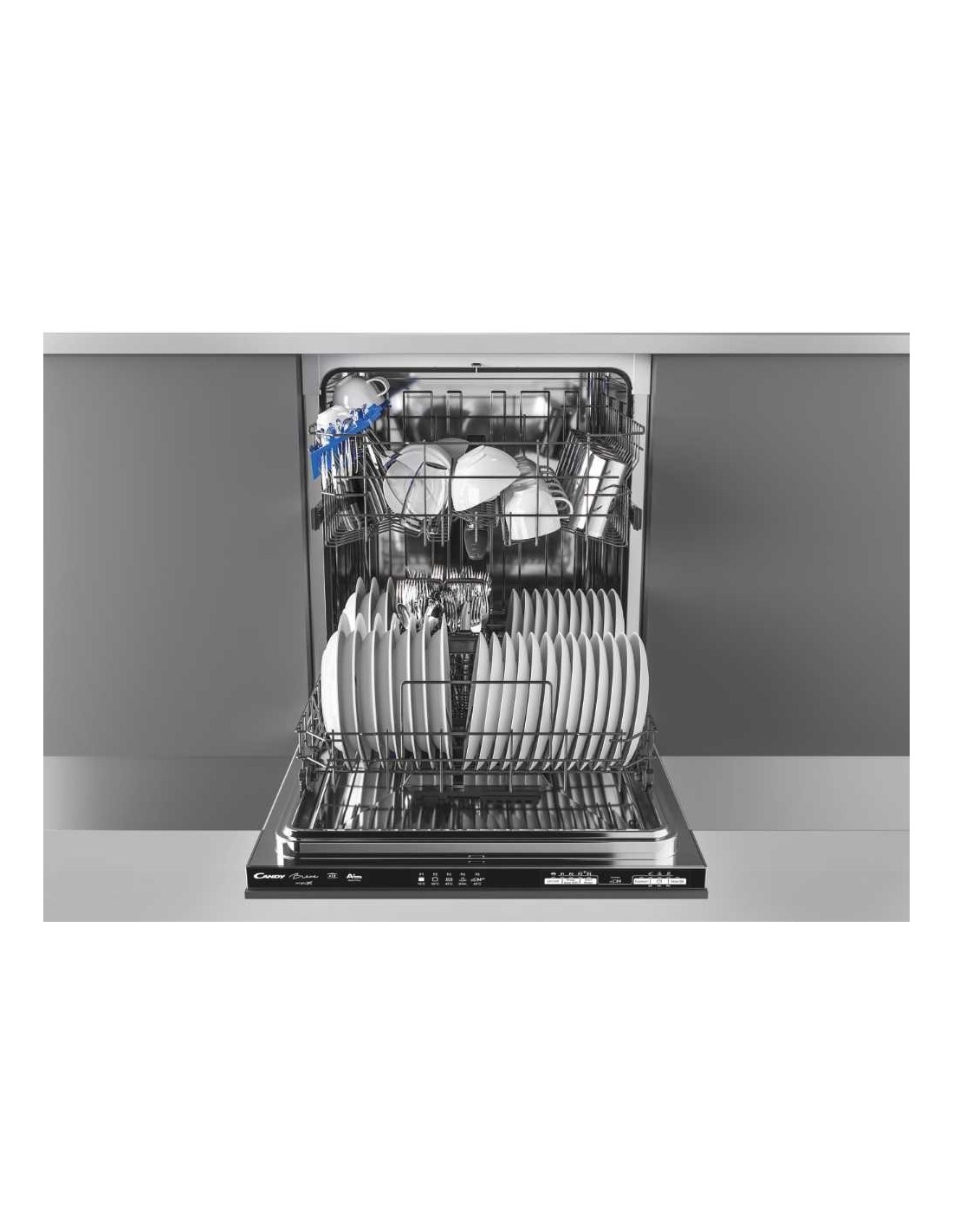 Candy Brava CDIN 1L360PB. Posizionamento dell'apparecchio: A scomparsa totale, Dimensione: Dimensione massima (60 cm), Colore pannello di controllo: Bianco. Numero di coperti: 13 coperti, Classe emissione rumore: C, Emissione acustica: 47 dB. Applicazioni per il controllo supportate: Candy simply-Fi. Classe efficienza energetica: E, Consumo di acqua per ciclo: 10,4 L, Consumo energetico per 100 cicli: 93 kWh. Larghezza: 598 mm, Profondità: 550 mm, Altezza: 820 mm