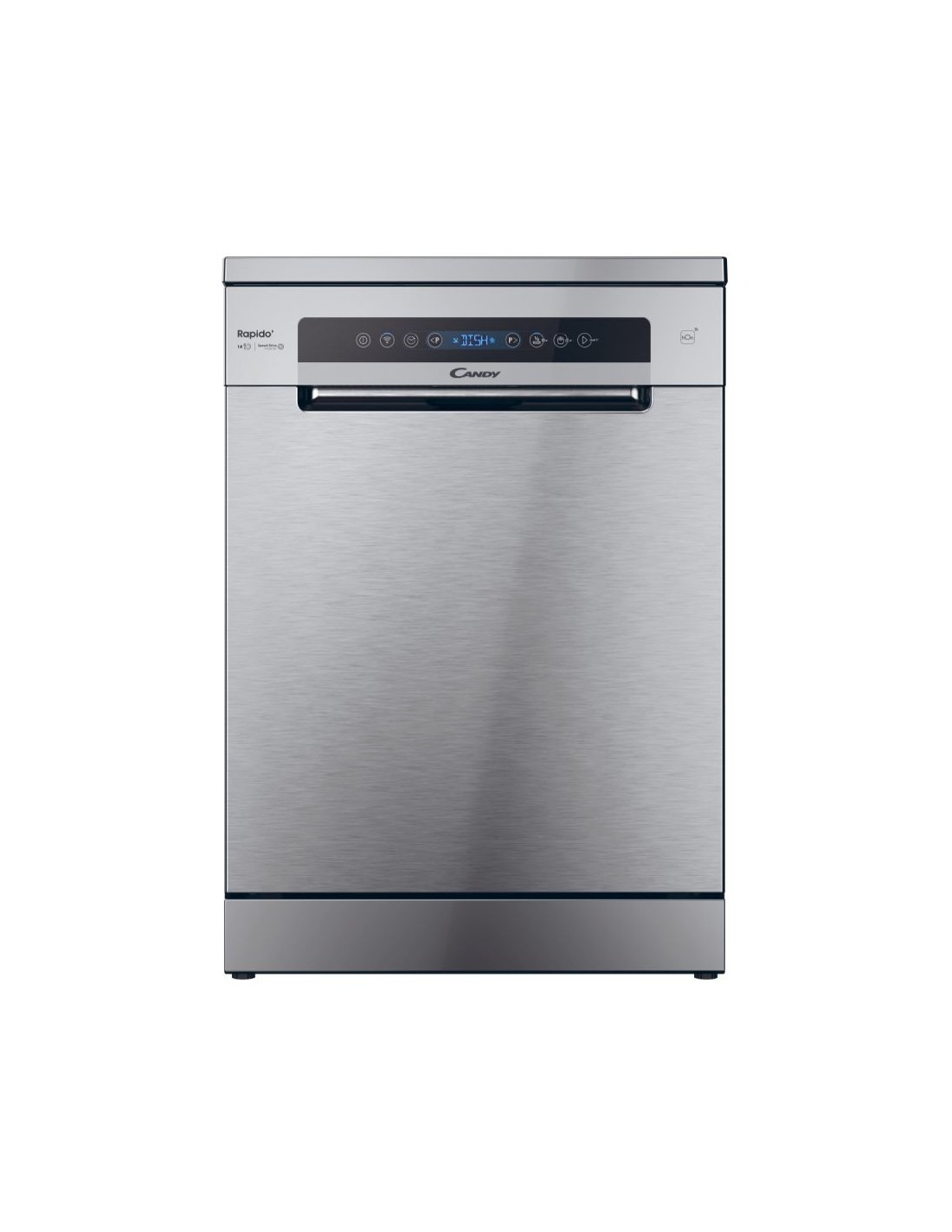 Candy RapidÓ CF 4C6F0X. Posizionamento dell'apparecchio: Libera installazione, Dimensione: Dimensione massima (60 cm), Colore della porta: Acciaio inossidabile. Numero di coperti: 14 coperti, Classe emissione rumore: C, Emissione acustica: 46 dB. Applicazioni per il controllo supportate: hOn. Classe efficienza energetica: C, Consumo di acqua per ciclo: 10,9 L, Consumo energetico per 100 cicli: 74 kWh. Larghezza: 597 mm, Profondità: 598 mm, Altezza: 850 mm
