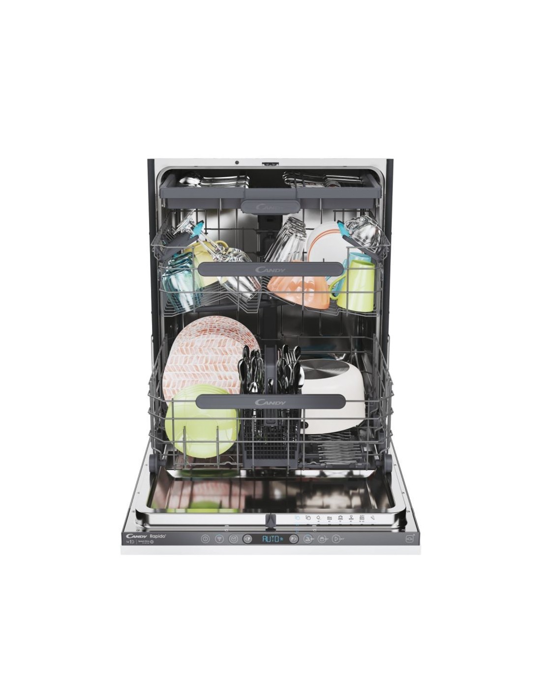 Candy RapidÓ CI 6C4F1PA. Posizionamento dell'apparecchio: A scomparsa totale, Dimensione: Dimensione massima (60 cm), Colore pannello di controllo: Antracite. Numero di coperti: 16 coperti, Classe emissione rumore: B, Emissione acustica: 44 dB. Applicazioni per il controllo supportate: hOn. Classe efficienza energetica: C, Consumo di acqua per ciclo: 9,5 L, Consumo energetico per 100 cicli: 76 kWh. Larghezza: 597 mm, Profondità: 555 mm, Altezza: 818 mm