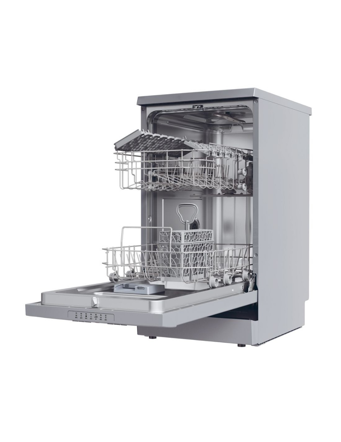 Candy Brava CDPH 2D1047S. Posizionamento dell'apparecchio: Libera installazione, Dimensione: Compatta (45 cm), Colore della porta: Stainless steel. Numero di coperti: 10 coperti, Classe emissione rumore: C, Emissione acustica: 47 dB. Classe efficienza energetica: E, Consumo di acqua per ciclo: 9 L, Consumo energetico per 100 cicli: 75 kWh. Larghezza: 448 mm, Profondità: 605 mm, Altezza: 846 mm