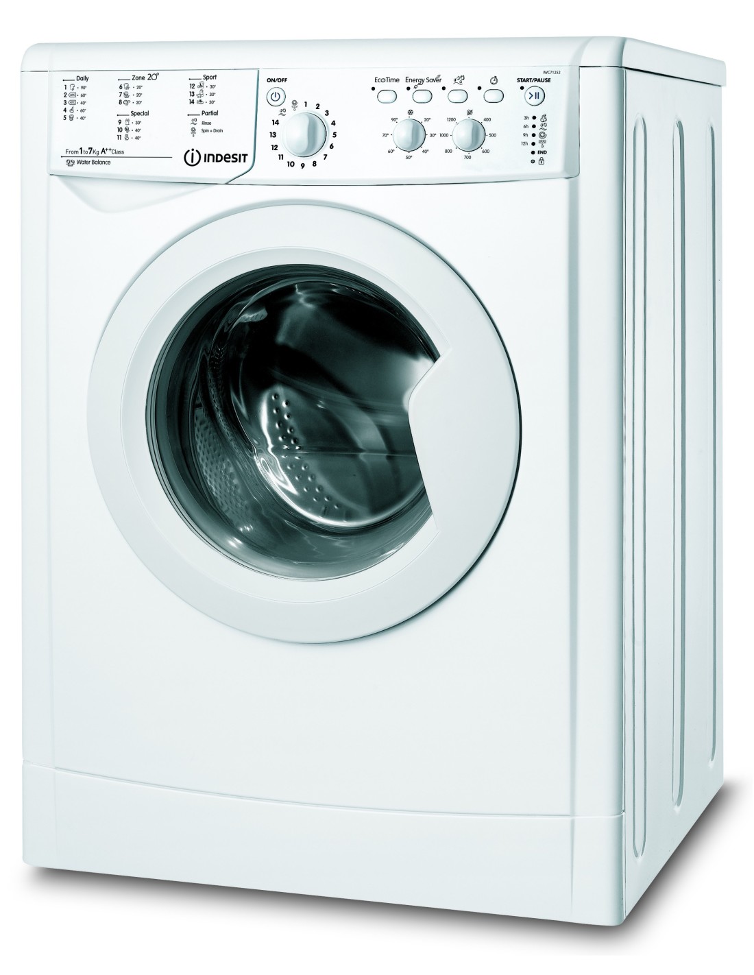 Indesit IWC 71252 C ECO EU. Tipo di carica: Caricamento frontale. Capacità cestello: 7 kg, Classe di efficienza della centrifuga: B, Silenziosità (centrifuga): 80 dB. Classe efficacia di lavaggio: A. Silenziosità (lavaggio): 57 dB, Velocità di centrifuga massima: 1200 Giri/min. Consumo energetico annuale: 198 kWh, Consumo annuale di acqua: 9000 L. Colore del prodotto: Bianco. Larghezza: 595 mm, Profondità: 517 mm, Altezza: 850 mm