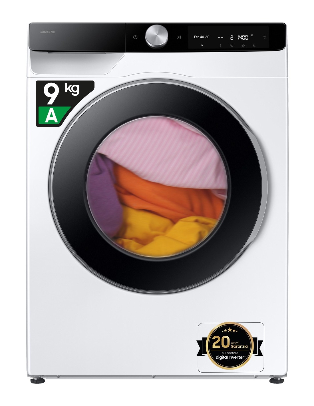 | Tecnologie Samsung (cura dei vestiti) | Controllo AI, AI EcoBubble, AI Wash, BubbleSoak™, Drum Clean+, SmartThings, StayClean Drawer, Super Speed |