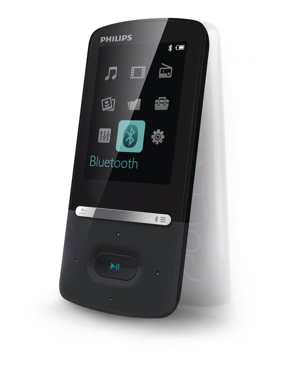 Sfoggia il tuo stile con GoGEAR Azure e goditi un audio superiore. Il lettore include sistema Bluetooth® per le connessioni wireless ai dispositivi audio, un display luminoso e nitido per una facile navigazione e una durata di riproduzione estesa per un ascolto piacevolmente prolungato.