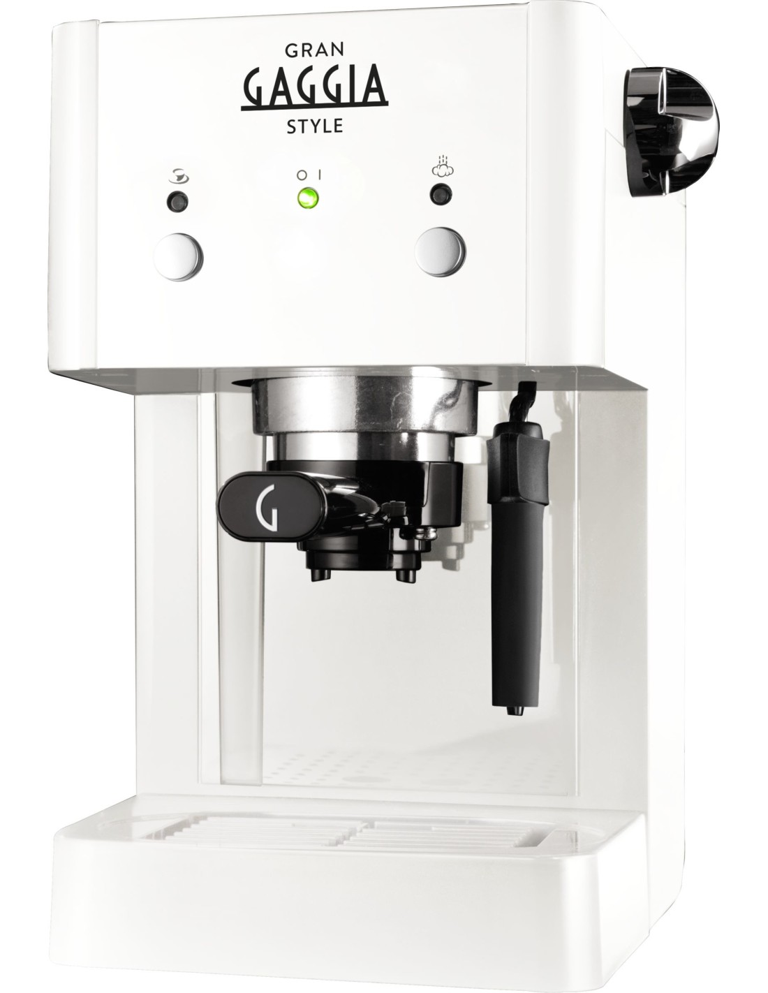 Gaggia Gran Macchina da caffè manuale RI8423/21. Tipo di prodotto: Macchina per espresso, Tipologia macchina del caffé: Manuale, Capacità tanica acqua: 1 L, Tipologia di caffè utilizzato: Caffè macinato, Vaschetta per caffè preparato: Tazza, Numero di erogatori: 2. Potenza: 950 W. Colore del prodotto: Bianco