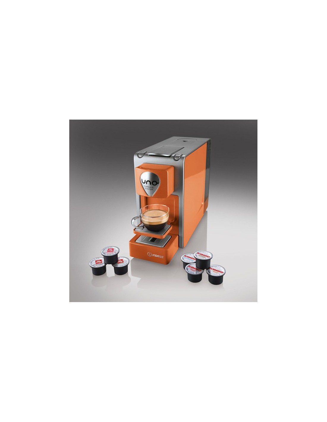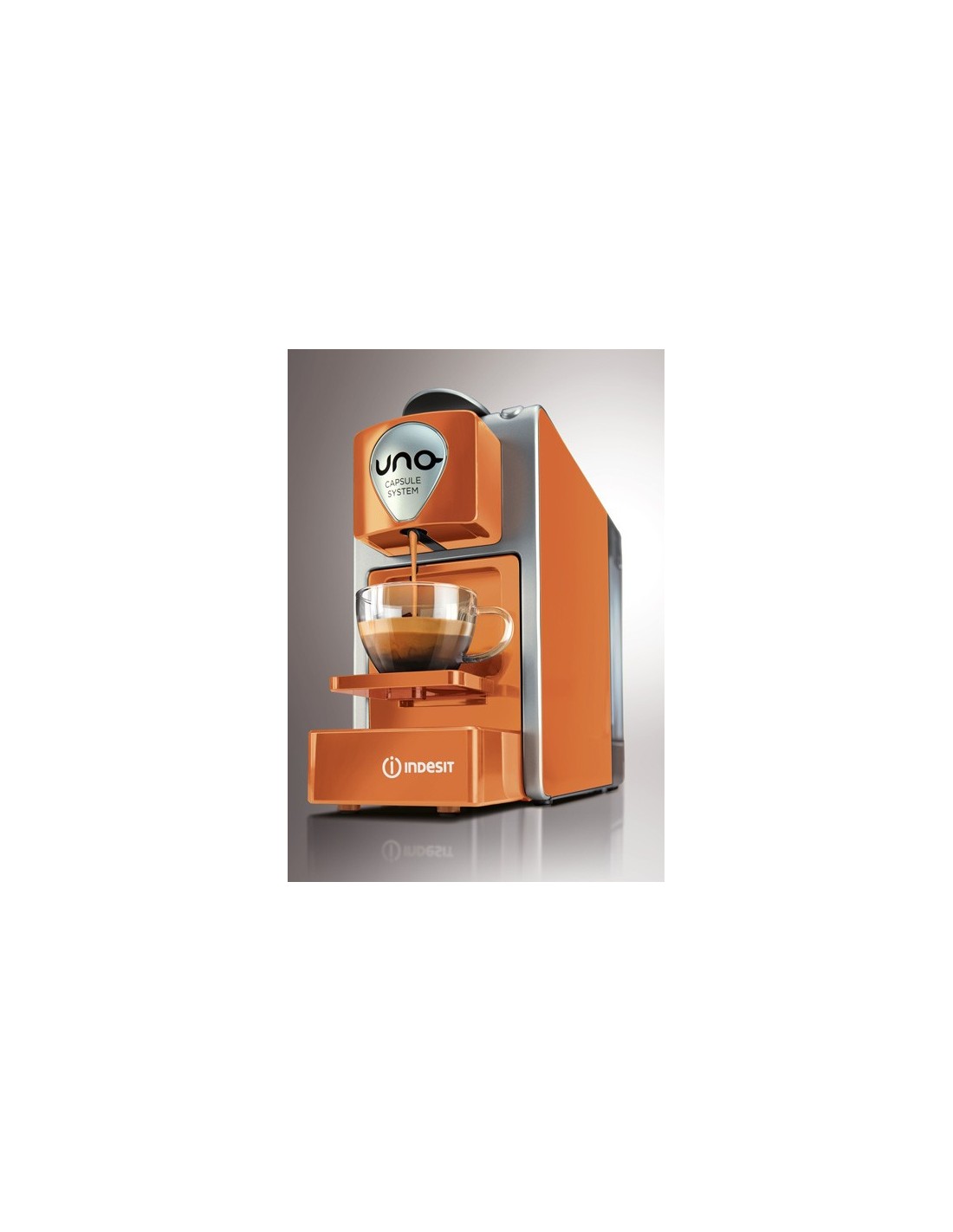 Indesit UNO. Tipo di prodotto: Macchina per caffè a capsule, Tipologia macchina del caffé: Automatica, Capacità tanica acqua: 1 L, Tipologia di caffè utilizzato: Capsule caffè, Capacità in tazze: 1 tazze. Potenza: 1300 W. Colore del prodotto: Arancione