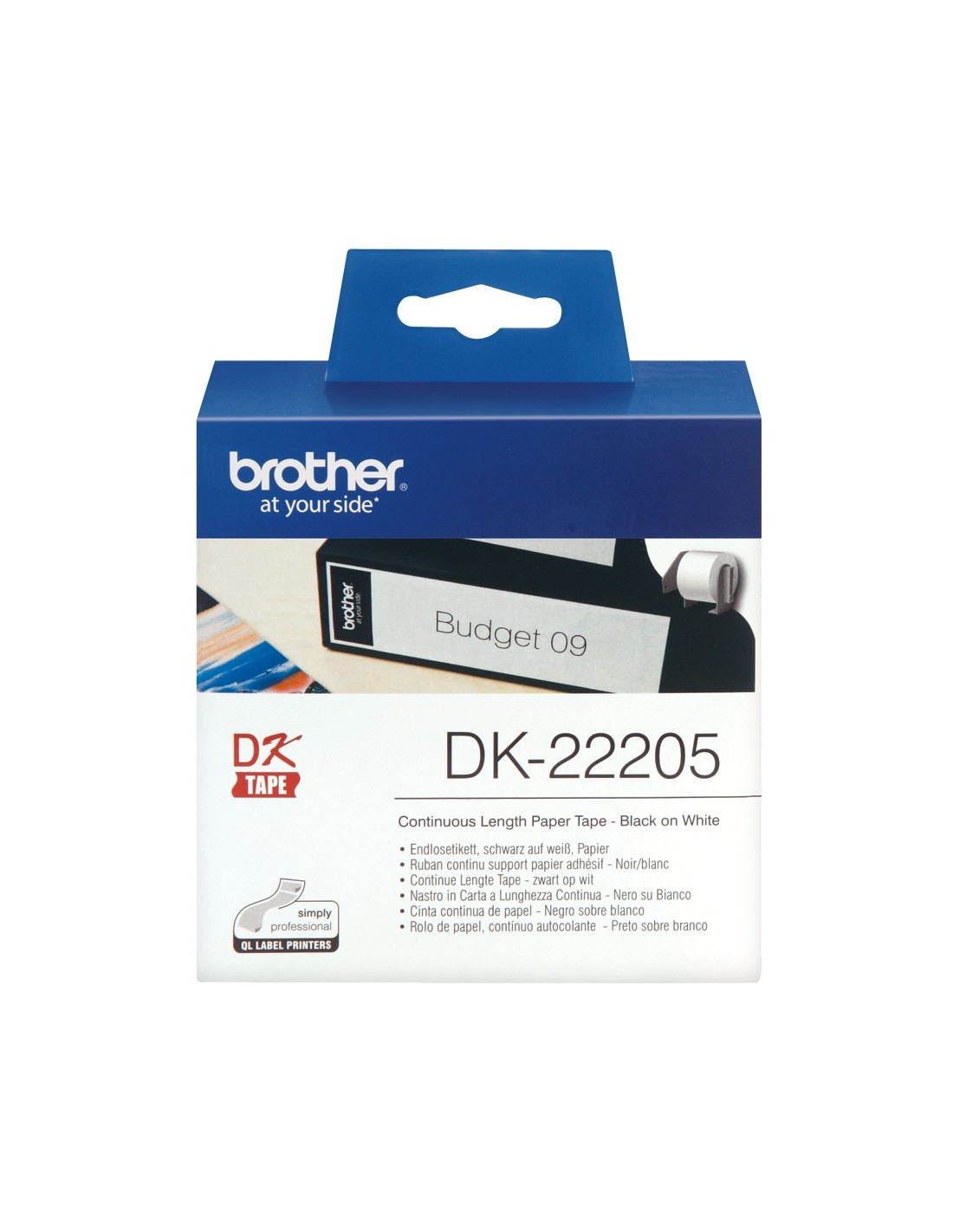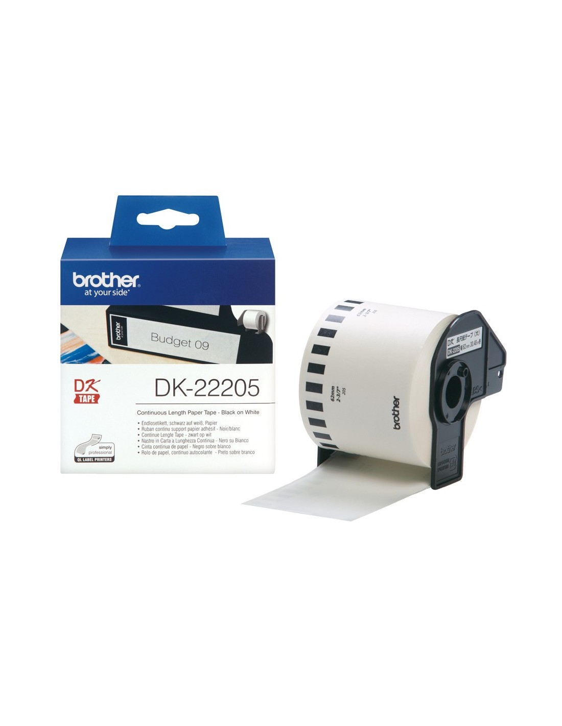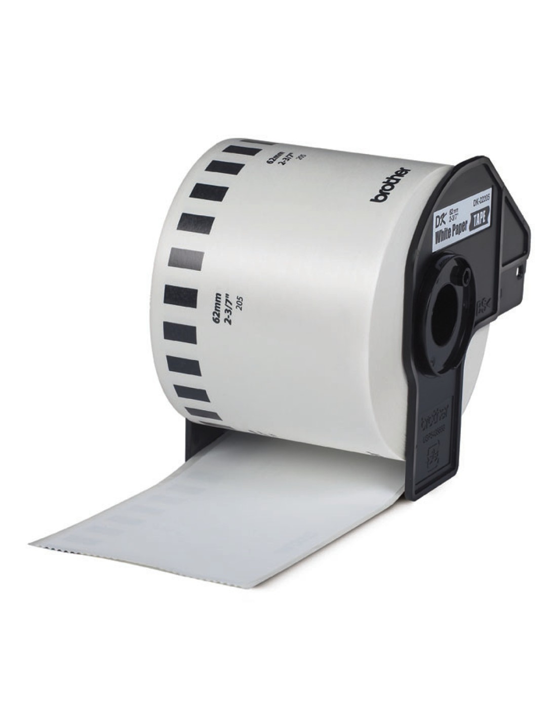 Brother Nastro carta continua. Colore etichetta: Nero su bianco, Tipo: Etichetta continua, Tipo nastro: DK. Ampiezza nastro: 6,2 cm, Lunghezza nastro: 30,48 m, Larghezza imballo: 118 mm