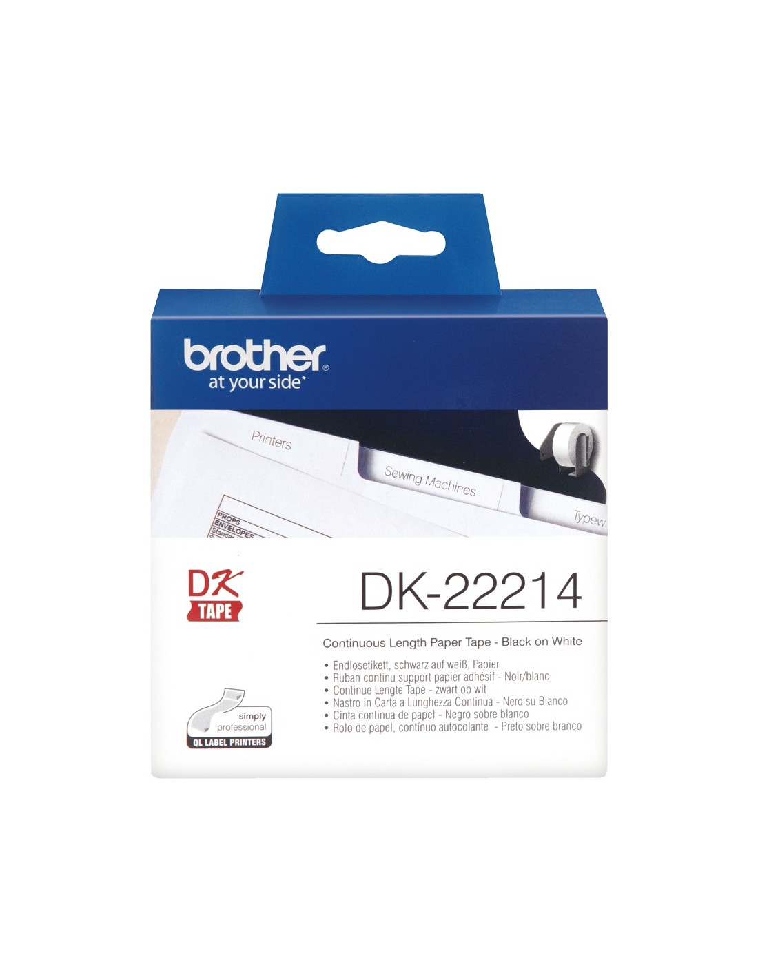 Brother Nastro carta continua. Colore etichetta: Nero su bianco, Tipo nastro: DK, Colore del prodotto: Nero, Bianco. Ampiezza nastro: 1,2 cm, Lunghezza nastro: 30,48 m, Tipo di imballo: Scatola