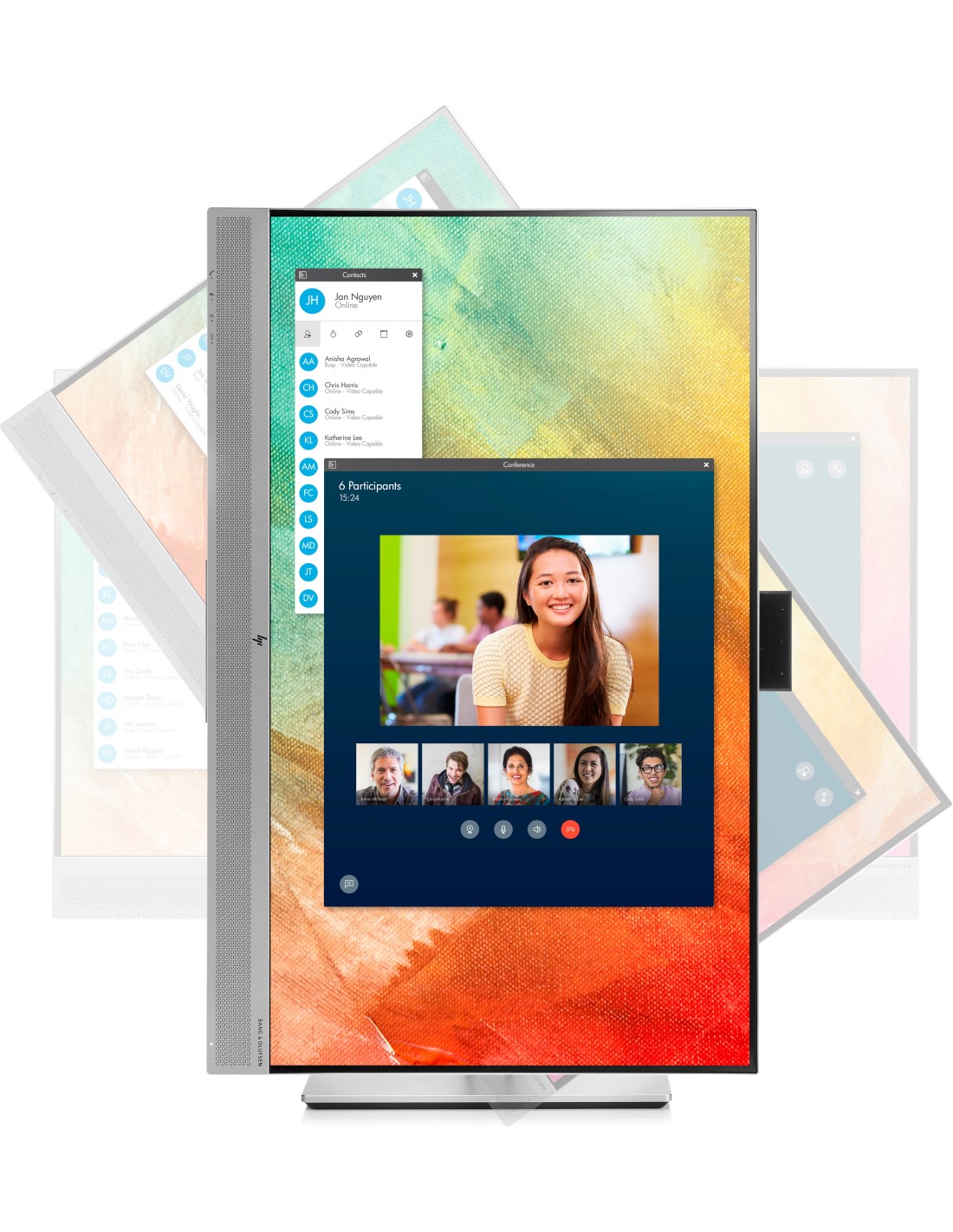 Collegati e collabora con la massima efficienza grazie al monitor HP EliteDisplay E273m da 68,58 cm (27"), certificato Skype for Business®, dotato di audio e video eccezionali, con cornice micro-edge su 3 lati per l'affiancamento multi-display
