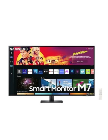 Samsung Smart Monitor M7 - M70B da 43'' UHD Flat. Dimensioni schermo: 109,2 cm (43"), Risoluzione del display: 3840 x 2160 Pixel, Tipologia HD: 4K Ultra HD, Tempo di risposta: 4 ms, Rapporto d'aspetto nativo: 16:9, Angolo di visualizzazione (orizzontale): 178°, Angolo di visualizzazione (verticale): 178°. Altoparlanti incorporati. Hub USB integrato, Versione dell'hub USB: 2.0. Montaggio standard VESA. Colore del prodotto: Nero