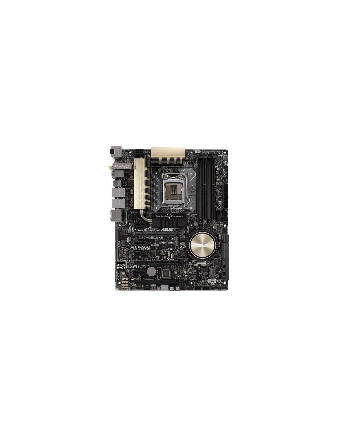 ASUS Z97-DELUXE. Produttore processore: Intel, Presa per processore: LGA 1150 (Presa H3), Processori compatibili: Intel® Celeron®. Tipi di memoria supportati: DDR3-SDRAM, tipo di slot di memoria: DIMM, Canali di memoria: Dual-channel. Interfacce dell'unità di archiviazione supportate: SATA III. Tecnologia di processo parallela: 3-Way CrossFireX,Quad-GPU SLI. Tipo di interfaccia Ethernet: Gigabit Ethernet, Controller LAN: Intel® I211-AT, Intel® I218-V