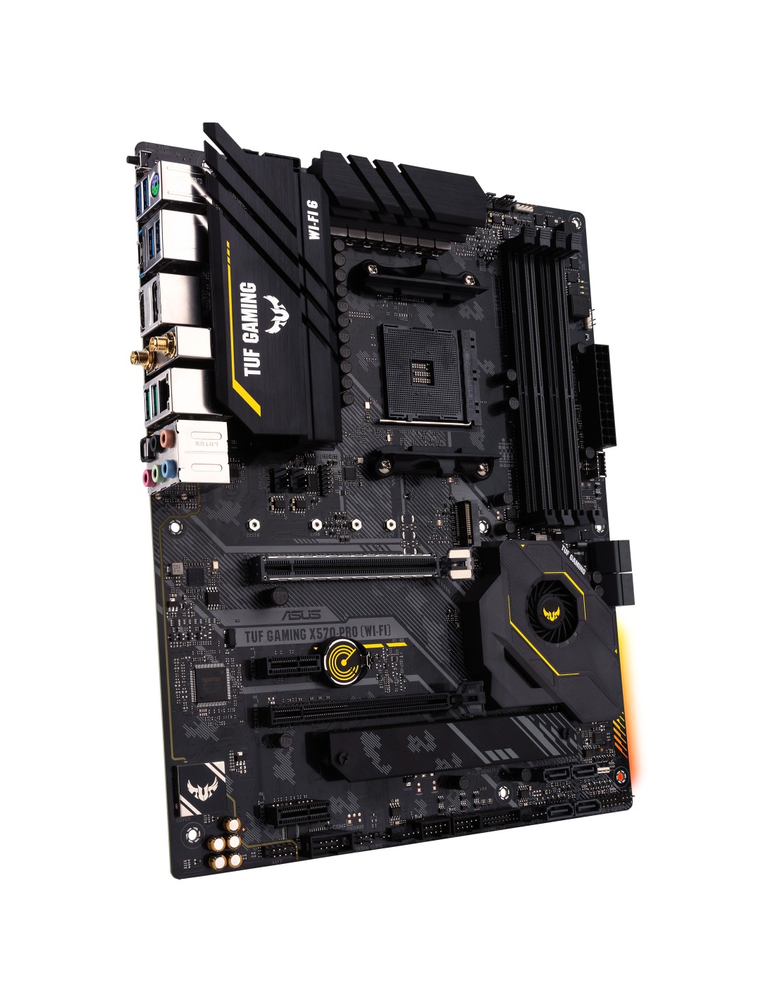 ASUS TUF GAMING X570-PRO (WI-FI). Produttore processore: AMD, Presa per processore: Presa AM4, Processori compatibili: AMD Ryzen™ 3. Tipi di memoria supportati: DDR4-SDRAM, RAM massima supportata: 128 GB, tipo di slot di memoria: DIMM. Interfacce dell'unità di archiviazione supportate: M.2, PCI Express 3.0. Tecnologia di processo parallela: 2-Way CrossFireX. Wi-Fi standard: Wi-Fi 6 (802.11ax), Standard Wi-Fi: 802.11a, 802.11b, 802.11g, Wi-Fi 4 (802.11n), Wi-Fi 5 (802.11ac), Wi-Fi 6 (802.11ax), Modello di dispositivo di controllo WLAN: Intel Wi-Fi 6 AX200
