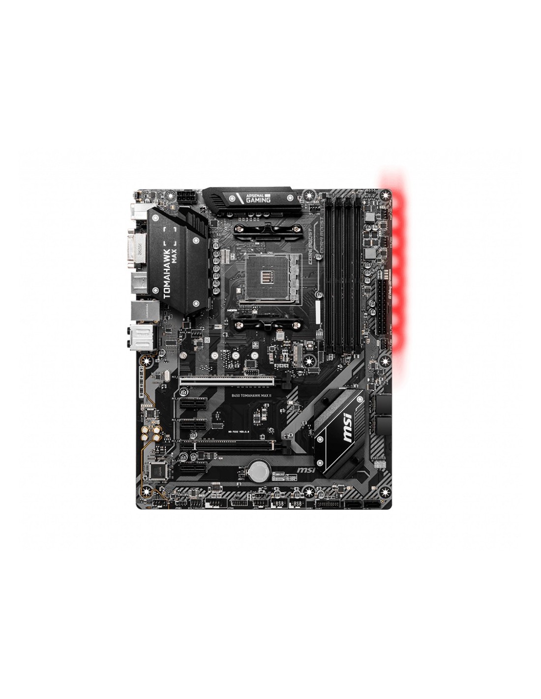 MSI B450 TOMAHAWK MAX II. Produttore processore: AMD, Presa per processore: Presa AM4, Processori compatibili: AMD Ryzen™ 3, AMD Ryzen™ 5, AMD Ryzen™ 7, 3rd Generation AMD Ryzen™ 9. Tipi di memoria supportati: DDR4-SDRAM, RAM massima supportata: 128 GB, tipo di slot di memoria: DIMM. Interfacce dell'unità di archiviazione supportate: SATA III, Tipi di unità di archiviazione supportate: HDD & SSD, Livelli RAID: 0, 1, 10. Risoluzione massima: 4096 x 2160 Pixel. Tipo di interfaccia Ethernet: Gigabit Ethernet, Controller LAN: Realtek 8111H