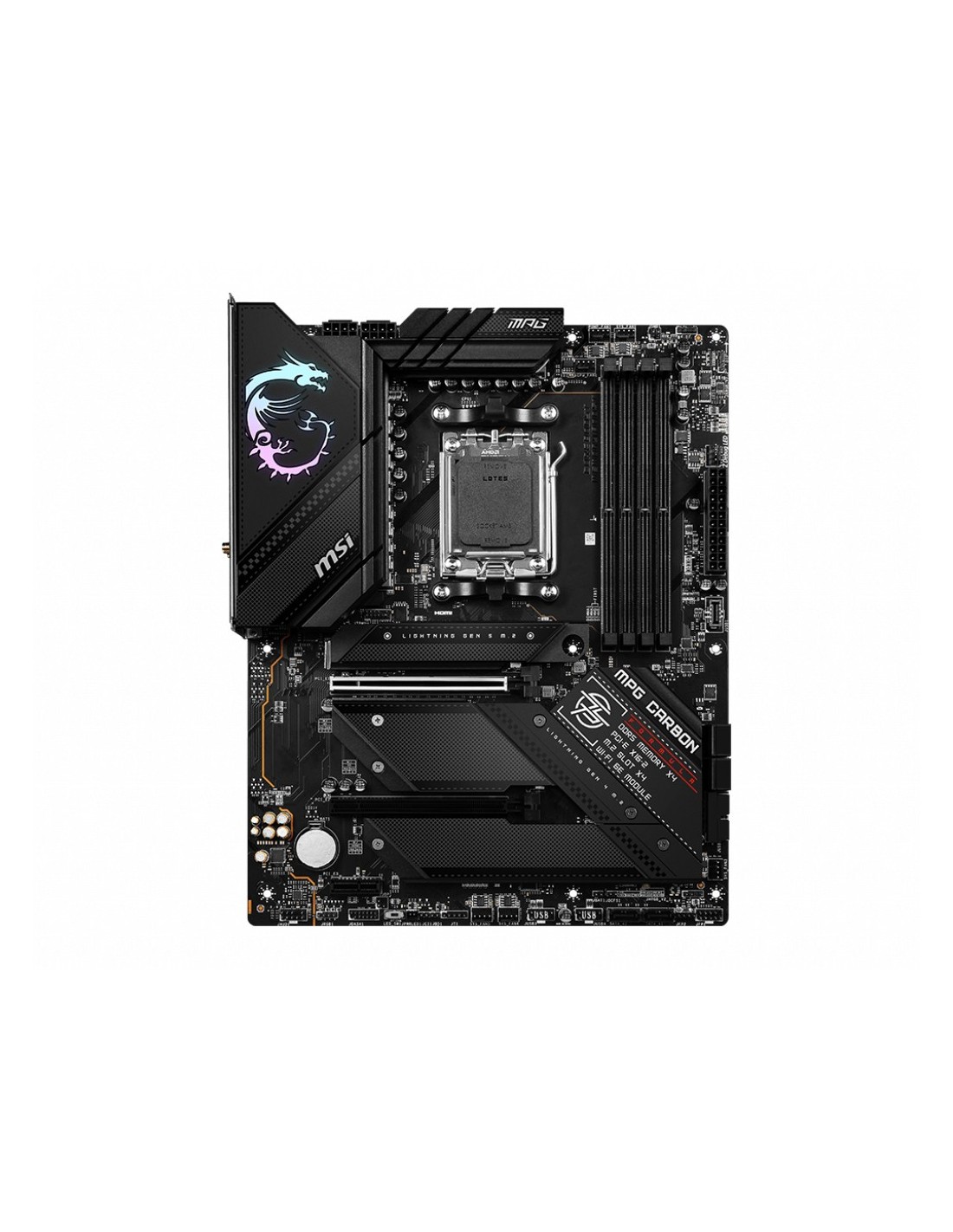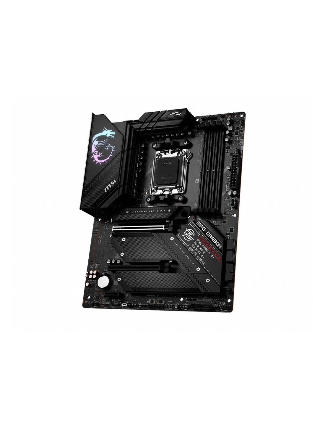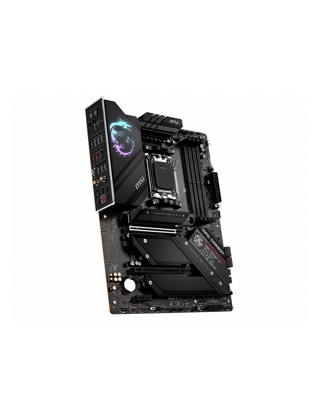 MSI MPG B650 CARBON WIFI. Produttore processore: AMD, Presa per processore: Presa di corrente AM5, Processori compatibili: AMD Ryzen 7 7th Gen, AMD Ryzen 9 7th Gen. Tipi di memoria supportati: DDR5-SDRAM, RAM massima supportata: 128 GB, Velocità di memoria supportate: 4800,5000,5200,5400,5600,5800,6000,6200,6400,6600 MHz. Interfacce dell'unità di archiviazione supportate: M.2, PCI Express 4.0, SATA, Livelli RAID: 0, 1, 5, 10. Tipo di interfaccia Ethernet: 2.5 Gigabit Ethernet, Controller LAN: Realtek RTL8125, Wi-Fi standard: Wi-Fi 6 (802.11ax). Componente per: PC, Fattore di forma scheda madre: ATX, Famiglia di chipset per scheda madre: AMD