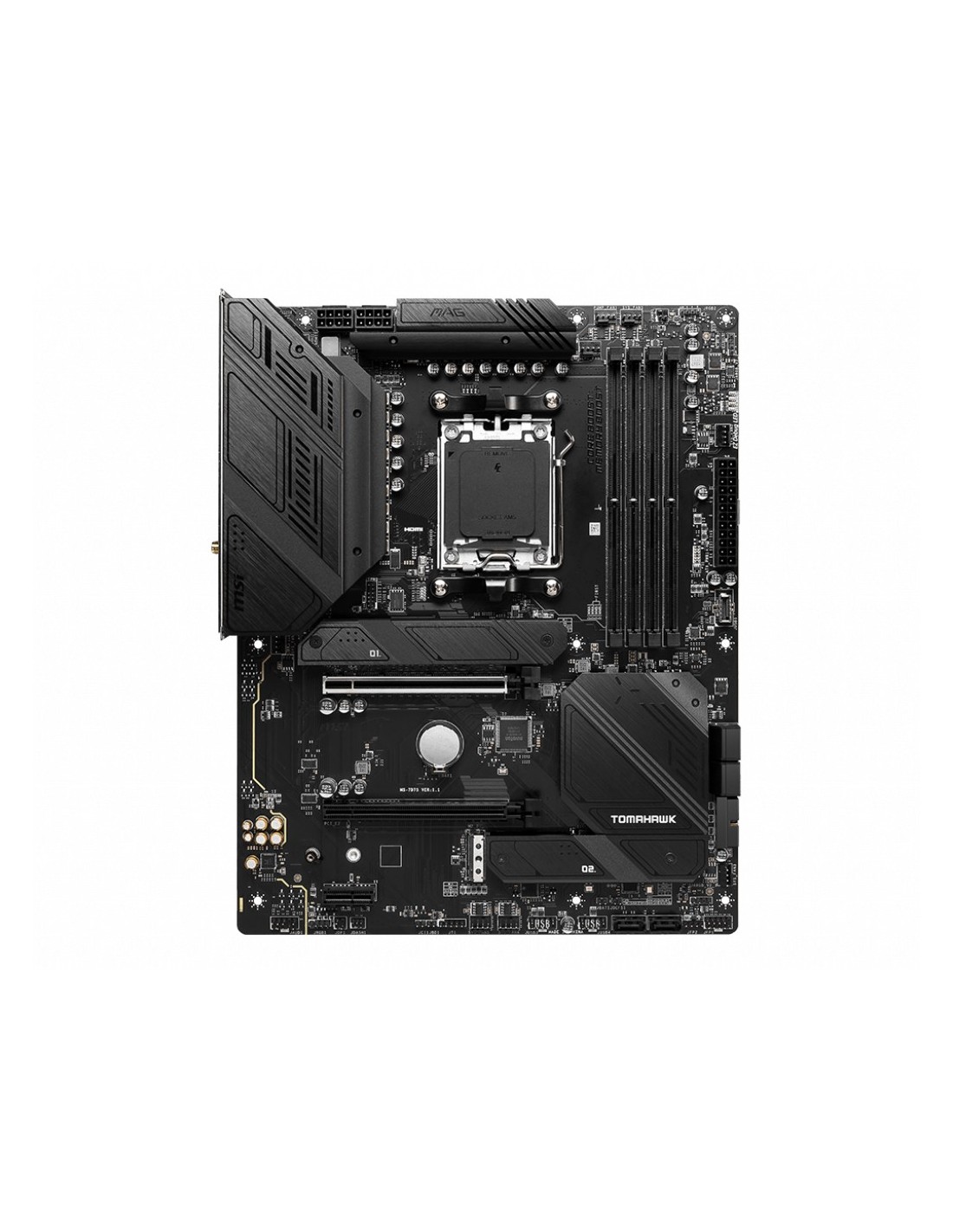 MSI MAG B650 Tomahawk WIFI. Produttore processore: AMD, Presa per processore: Presa di corrente AM5, Processori compatibili: AMD Ryzen 7 7th Gen, AMD Ryzen 9 7th Gen. Tipi di memoria supportati: DDR5-SDRAM, RAM massima supportata: 128 GB, Velocità di memoria supportate: 4800,5000,5200,5400,5600,5800,6000,6200,6400,6600 MHz. Interfacce dell'unità di archiviazione supportate: M.2, SATA, Livelli RAID: 0, 1, 10. Tipo di interfaccia Ethernet: 2.5 Gigabit Ethernet, Controller LAN: Realtek RTL8125B, Wi-Fi standard: Wi-Fi 6E (802.11ax). Componente per: PC, Fattore di forma scheda madre: ATX, Famiglia di chipset per scheda madre: AMD