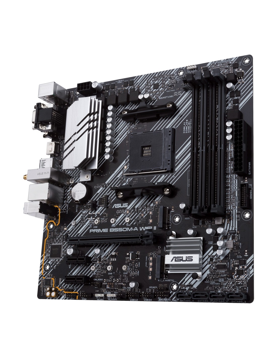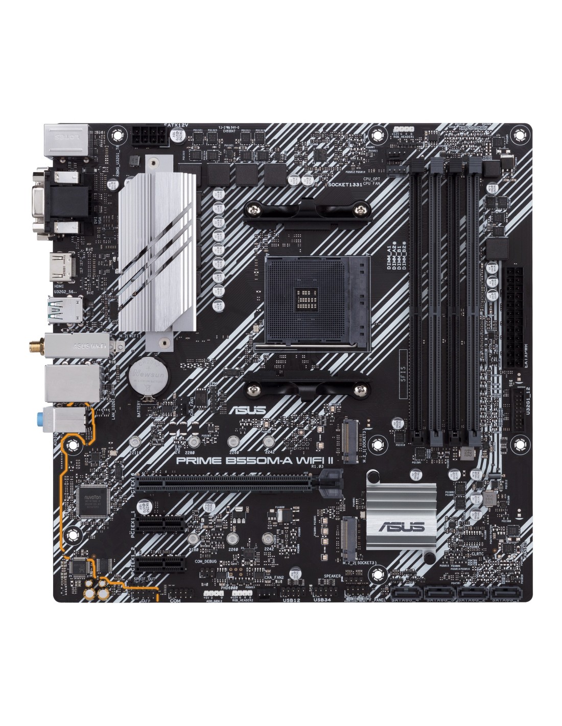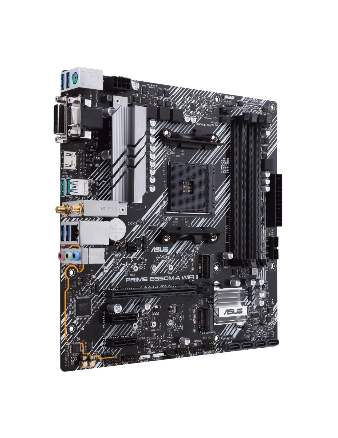ASUS PRIME B550M-A WIFI II. Produttore processore: AMD, Presa per processore: Socket AM4, Processori compatibili: AMD Ryzen™ 3, AMD Ryzen™ 5, AMD Ryzen™ 7, 3rd Generation AMD Ryzen™ 9, AMD Ryzen 9 5th Gen. Tipi di memoria supportati: DDR4-SDRAM, RAM massima supportata: 128 GB, tipo di slot di memoria: DIMM. Interfacce dell'unità di archiviazione supportate: M.2, PCI Express 3.0, PCI Express 4.0, SATA III, Tipi di unità di archiviazione supportate: HDD & SSD, Livelli RAID: 0, 1, 10. Connettore USB: USB tipo A. Tipo di interfaccia Ethernet: Gigabit Ethernet, Controller LAN: Realtek RTL8111H, Wi-Fi standard: Wi-Fi 6 (802.11ax)