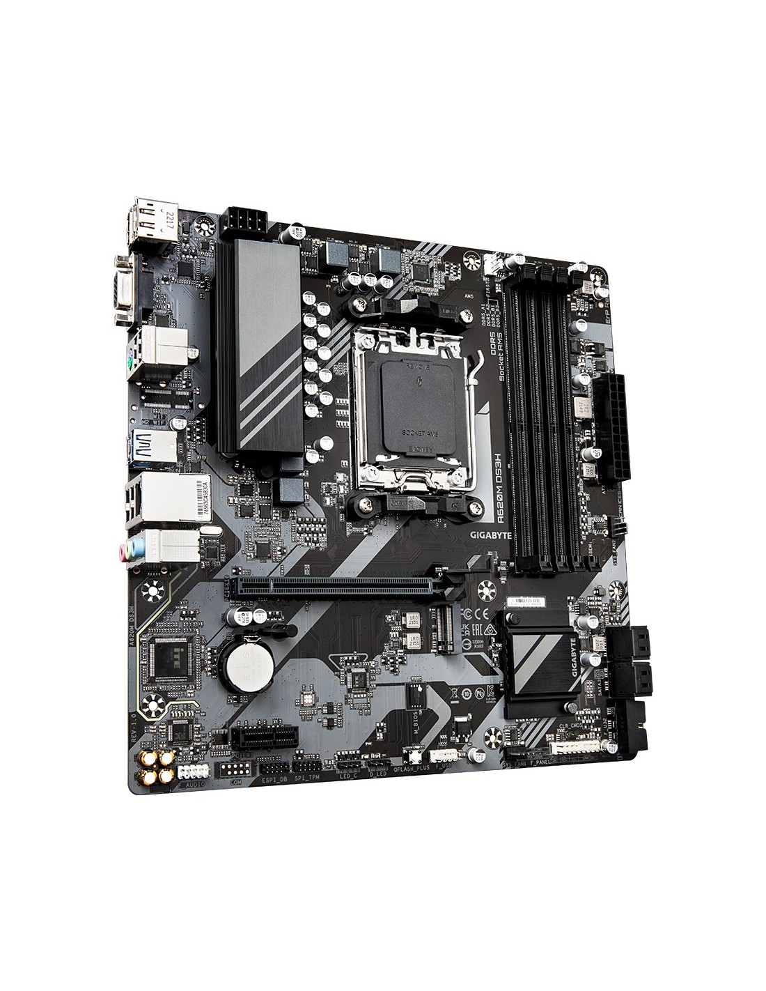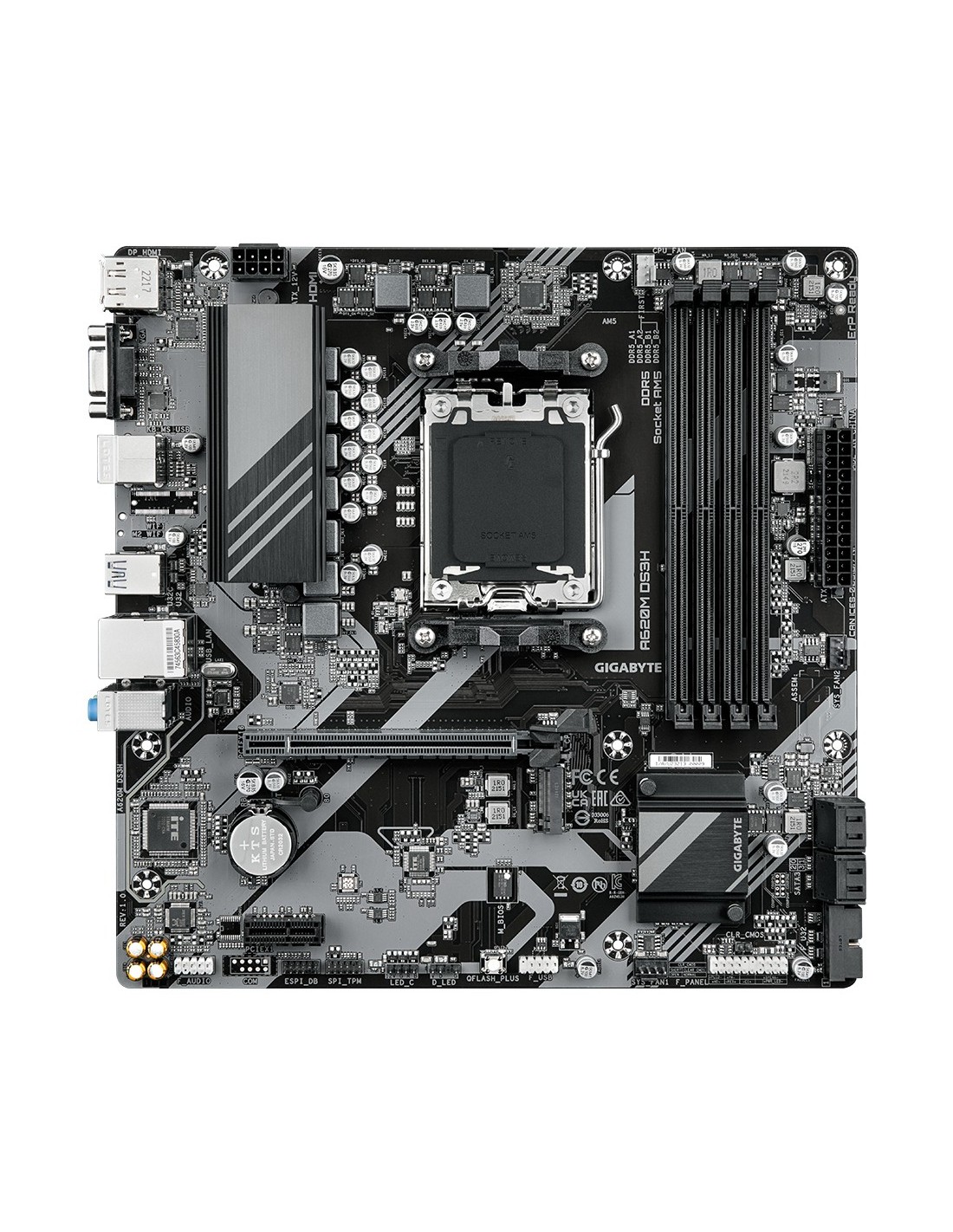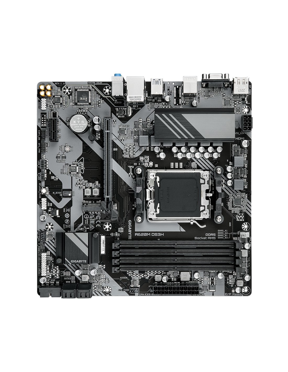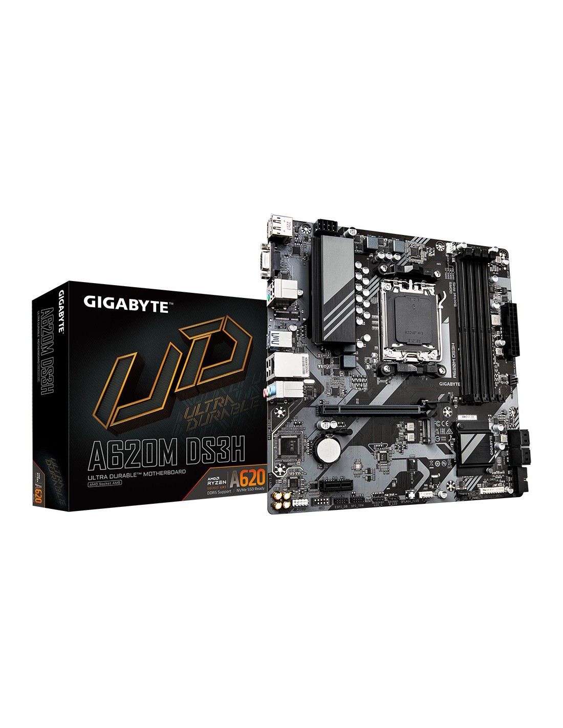 GIGABYTE A620M DS3H Scheda madre - Supporta CPU AMD Ryzen 8000, VRM digitale 5+2+2 fasi, fino a 7600MHz DDR5 (OC), 1xPCIe 4.0 M.2, GbE LAN, USB 3.2 Gen 1. Produttore processore: AMD, Presa per processore: Socket AM5, Processori compatibili: AMD Ryzen 7000 Series. Tipi di memoria supportati: DDR5-SDRAM, RAM massima supportata: 192 GB, tipo di slot di memoria: DIMM. Interfacce dell'unità di archiviazione supportate: M.2, SATA III, Tipi di unità di archiviazione supportate: HDD & SSD, Livelli RAID: 0, 1, 10. Risoluzione massima: 4096 x 2160 Pixel. Connettore USB: USB tipo A, USB tipo-C