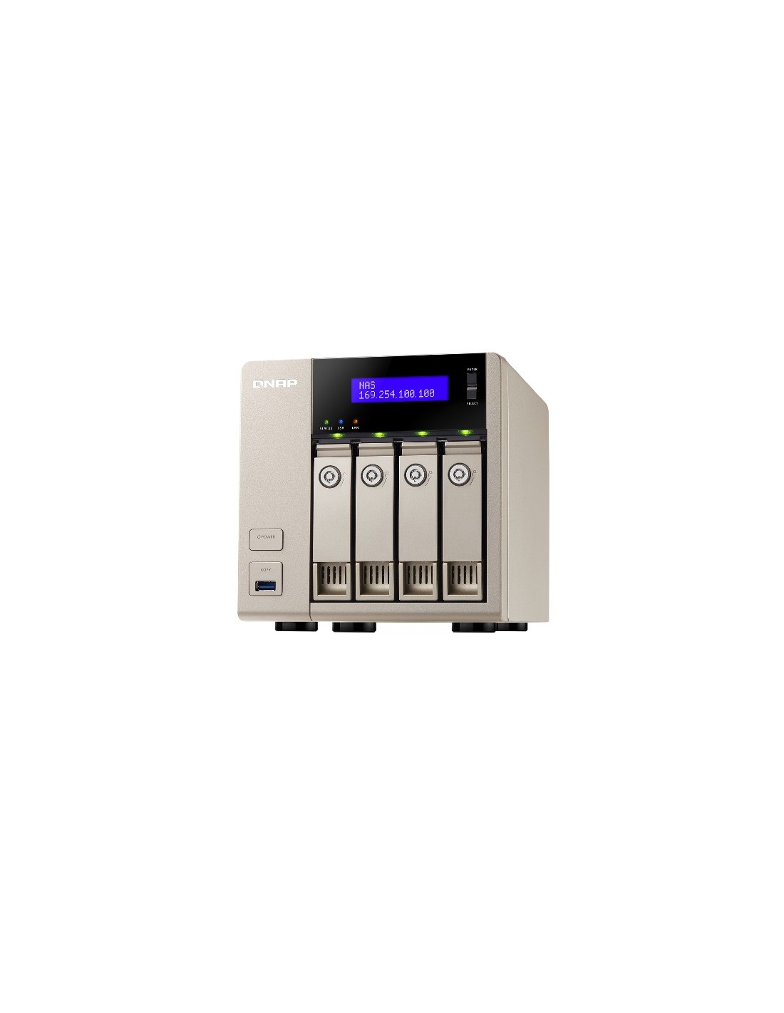 QNAP TVS-463. Tipi di unità di archiviazione supportate: HDD & SSD, Interfaccia dispositivo di archiviazione: Seriale ATA II, Serial ATA III, Dimensione del dispositivo di archiviazione: 2.5/3.5". Frequenza del processore: 2,4 GHz. RAM installata: 4 GB, Tipo di RAM: DDR3L, Velocità memoria: 1600 MHz. Velocità trasferimento Ethernet LAN: 10,100,1000 Mbit/s, Protocolli di rete supportati: CIFS/SMB, AFP (v3.3), NFS(v3), FTP, FTPS, SFTP, TFTP, HTTP(S), Telnet, SSH, iSCSI, SNMP, SMTP, and.... Tipo di case: Tower, Tipo di raffreddamento: Attivo, Colore del prodotto: Oro