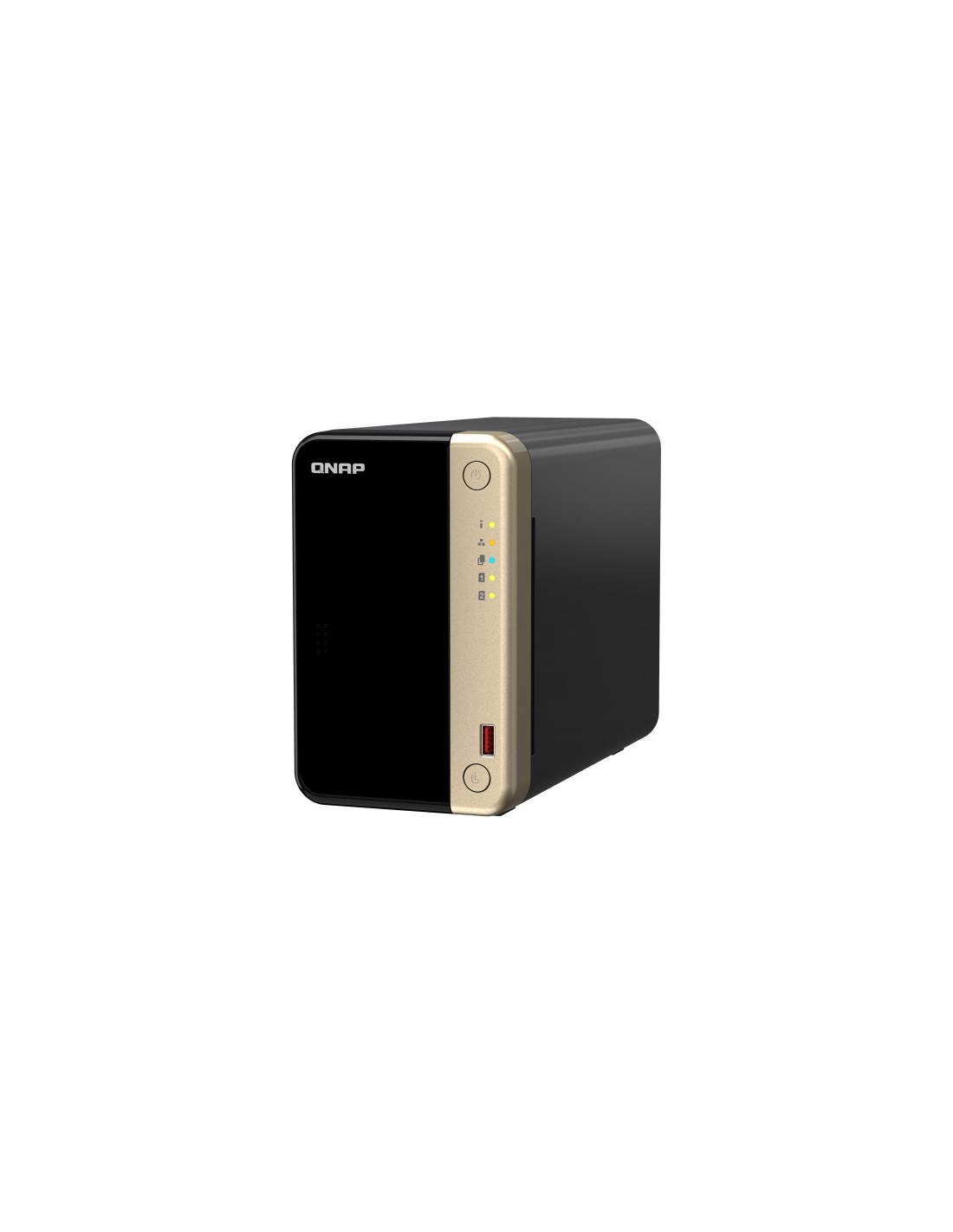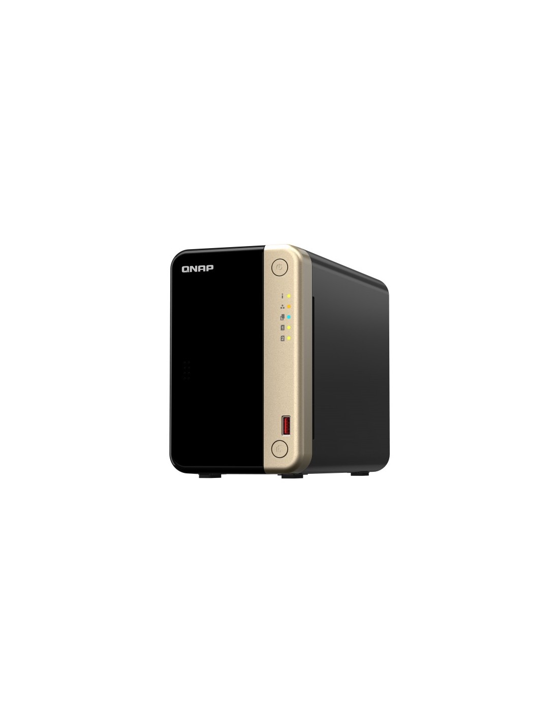 QNAP TS-264. Tipi di unità di archiviazione supportate: HDD & SSD, Interfacce dell'unità di archiviazione supportate: Serial ATA III, Dimensioni dei dispositivi di archivio supportati: 2.5,3.5". Famiglia processore: Intel® Celeron®, Produttore processore: Intel, Modello del processore: N5095. RAM installata: 8 GB, Massima RAM supportata: 8 GB, Memoria flash: 4000 MB. Velocità trasferimento Ethernet LAN: 10,100,1000,2500 Mbit/s, Protocolli di rete supportati: IPv4, IPv6. Tipo di case: Tower, Tipo di raffreddamento: Attivo, Colore del prodotto: Nero, Oro