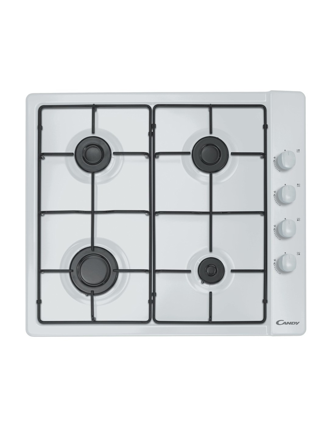 Candy CLG64SPB. Colore del prodotto: Bianco, Posizionamento dell'apparecchio: Da incasso, Dimensione della larghezza del piano cottura: 58 cm. Tipo di controllo: Manopola, Posizione di controllo: In alto a destra. Potenza aggregata (gas): 7100 W, Tensione di ingresso AC: 220 - 240 V. Larghezza: 585 mm, Profondità: 510 mm, Altezza: 33 mm