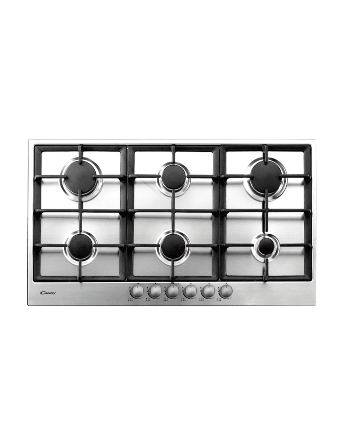 Candy Timeless PG960/1SXGH. Colore del prodotto: Acciaio inossidabile, Posizionamento dell'apparecchio: Da incasso, Dimensione della larghezza del piano cottura: 90.9 cm. Tipo di controllo: Manopola, Posizione di controllo: Frontale superiore. Potenza aggregata (gas): 12250 W, Tensione di ingresso AC: 220 - 240 V. Larghezza: 909 mm, Profondità: 510 mm, Altezza: 50 mm