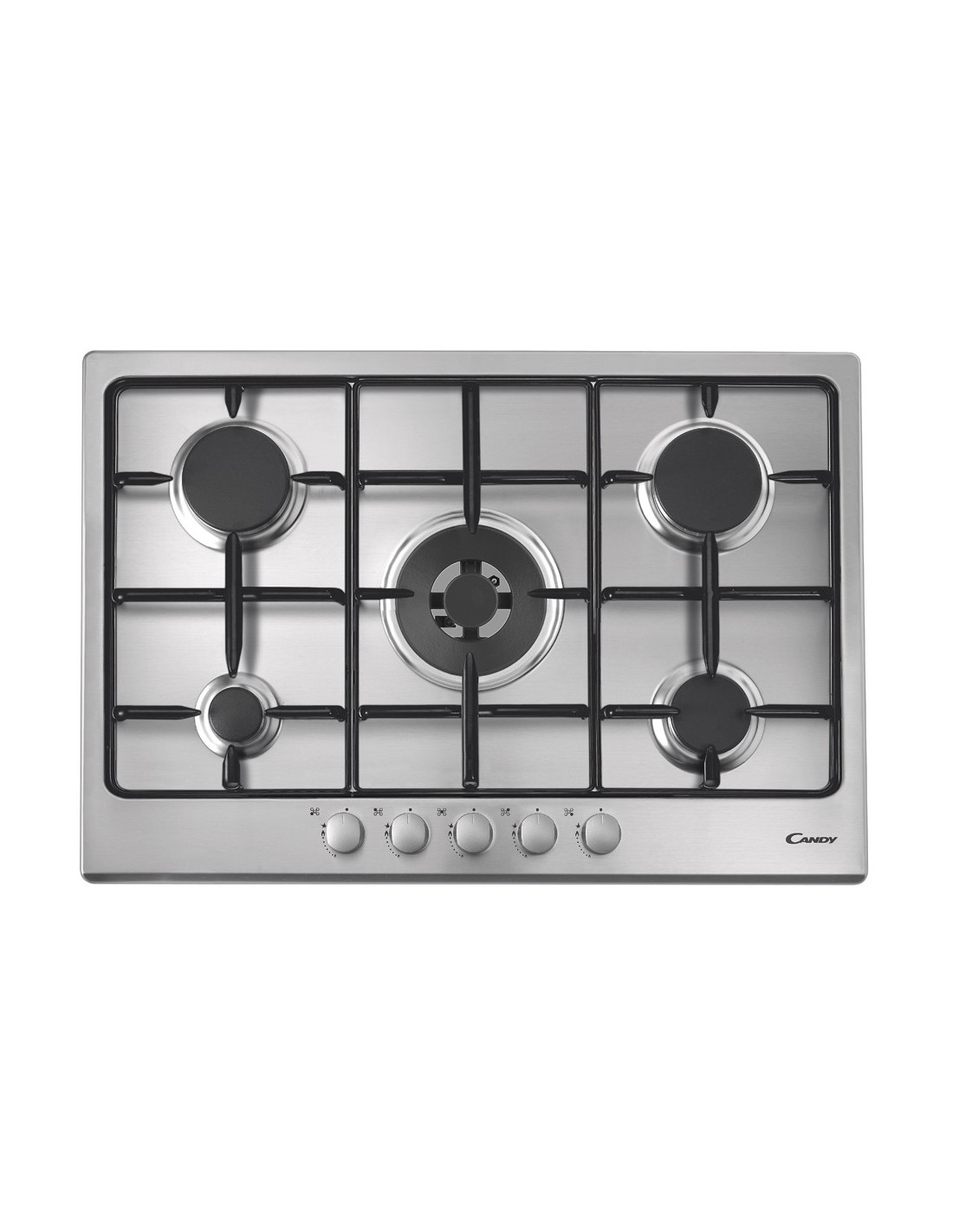 Candy Timeless CPG75SWPX. Colore del prodotto: Acciaio inossidabile, Posizionamento dell'apparecchio: Da incasso, Dimensione della larghezza del piano cottura: 75 cm. Bruciatore piccolo: 1000 W, Bruciatore medio: 1750 W, Bruciatore grande: 2500 W. Tipo di controllo: Manopola, Posizione di controllo: Frontale superiore. Potenza aggregata (gas): 11750 W, Tensione di ingresso AC: 220 - 240 V. Larghezza: 745 mm, Profondità: 510 mm, Altezza: 45 mm