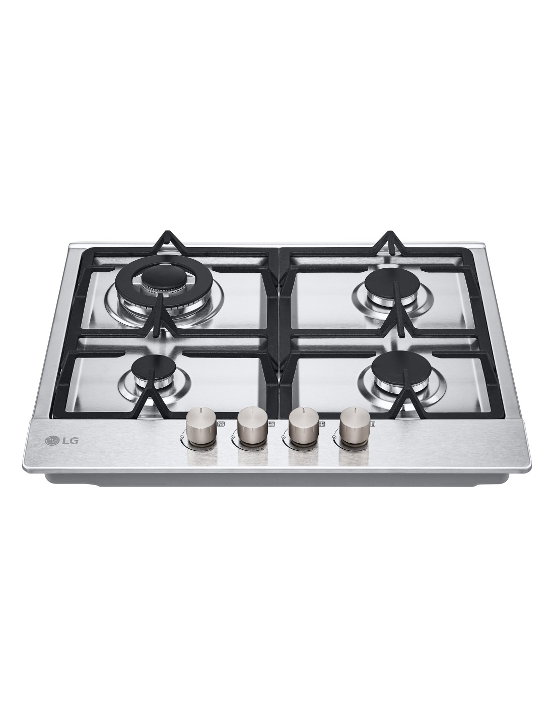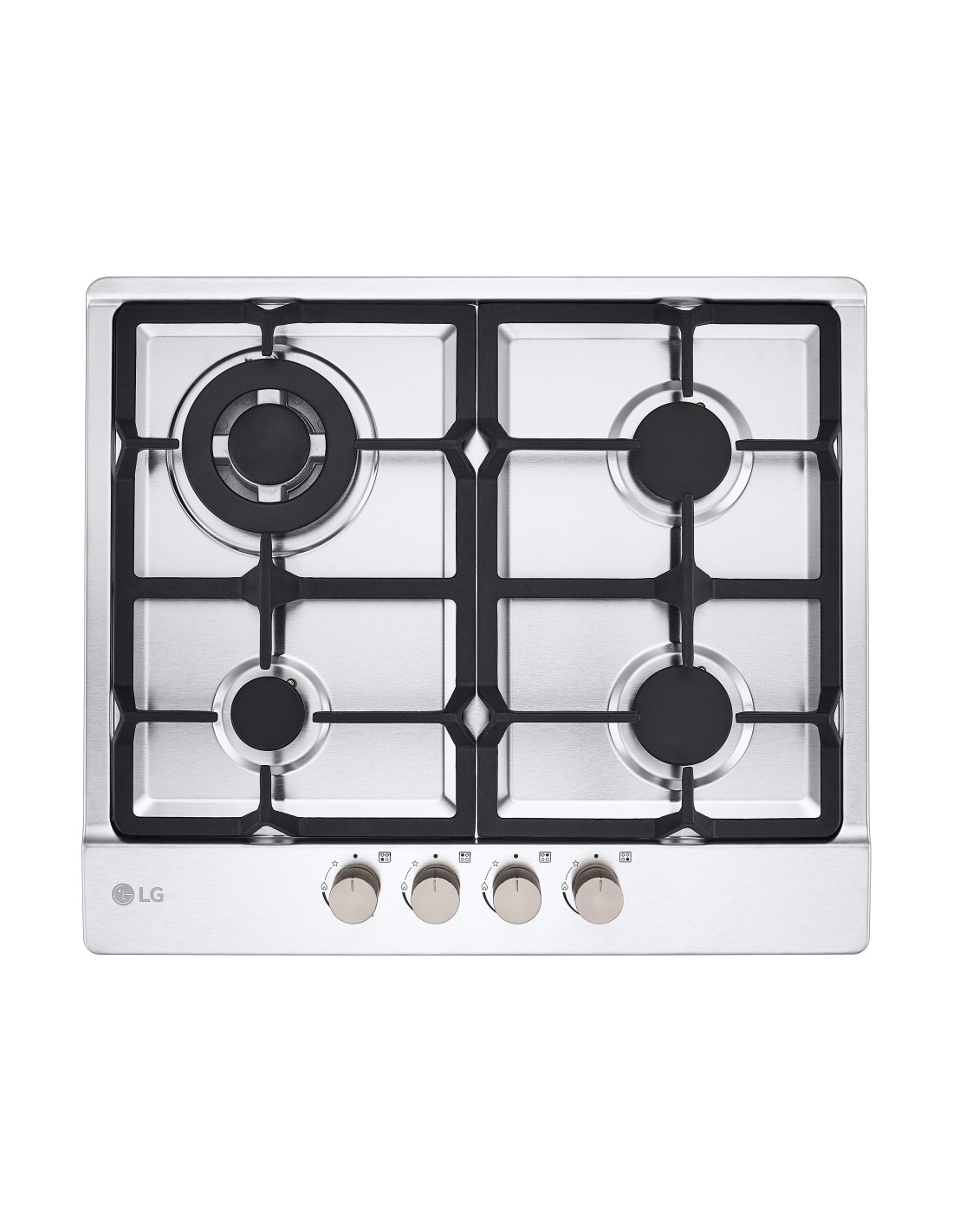 LG CBGZ2414S Piano cottura a gas 60cm, 8,5kW, 4 bruciatori, Griglie in ghisa, Piatto inox. Colore del prodotto: Acciaio inox, Posizionamento dell'apparecchio: Da incasso, Dimensione della larghezza del piano cottura: 59 cm. Tipo di controllo: Manopola, Posizione di controllo: Frontale. Potenza aggregata (gas): 8500 W, Tensione di ingresso AC: 220-240 V, Frequenza di ingresso AC: 50/60 Hz. Larghezza: 594 mm, Profondità: 514 mm, Altezza: 90 mm. Larghezza imballo: 678 mm, Profondità imballo: 590 mm, Altezza imballo: 180 mm