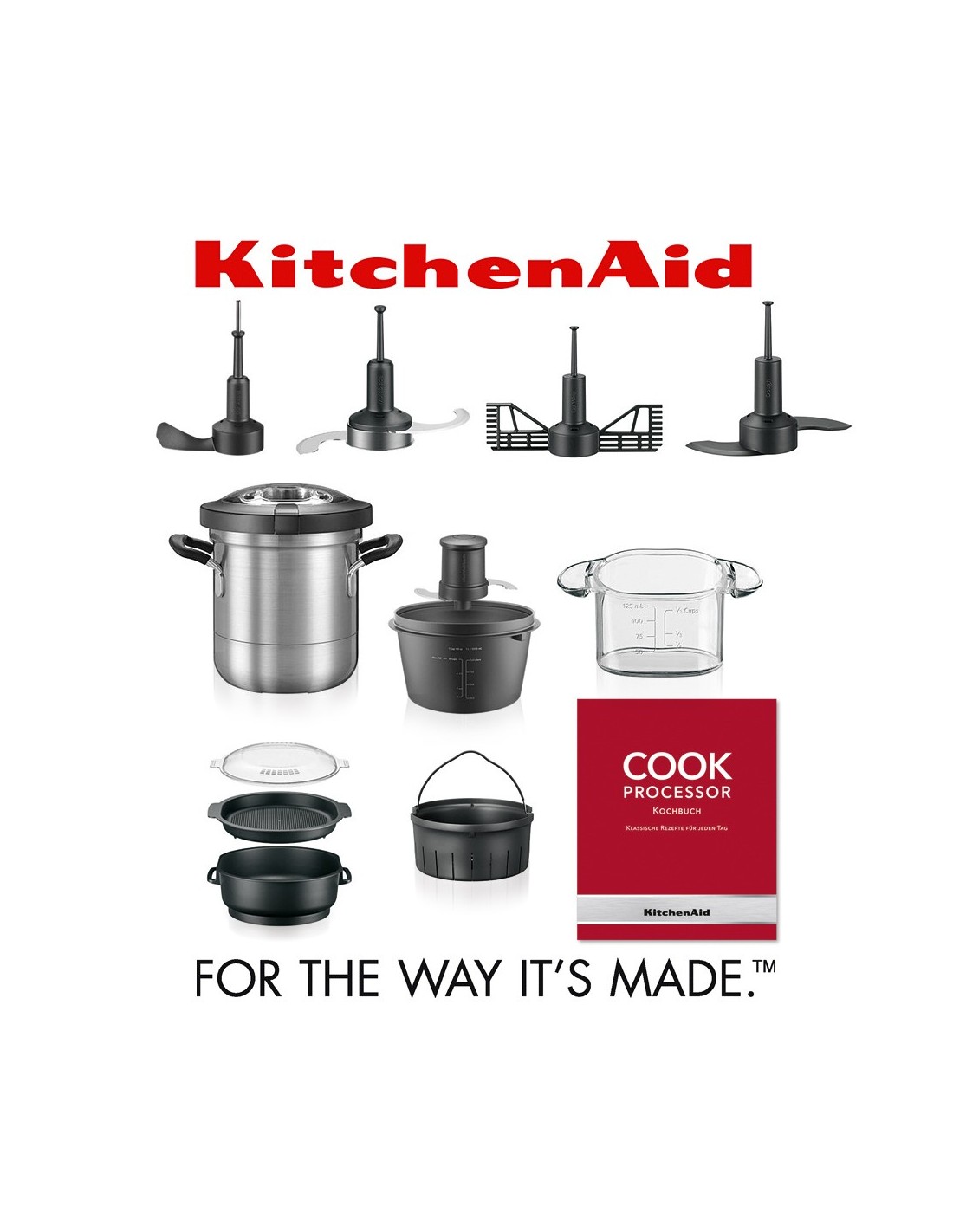 KitchenAid Cook Processor. Capacità ciotola: 4,5 L, Colore del prodotto: Crema, Tipo di controllo: Pulsanti, Leva, Manopola. Materiale ciotola: Acciaio inossidabile, Materiali: Acciaio inossidabile. Tipo di display: LED. Potenza: 1500 W, Tensione di ingresso AC: 200-240 V, Frequenza di ingresso AC: 50 - 60 Hz. Larghezza: 314 mm, Profondità: 342 mm, Altezza: 411 mm