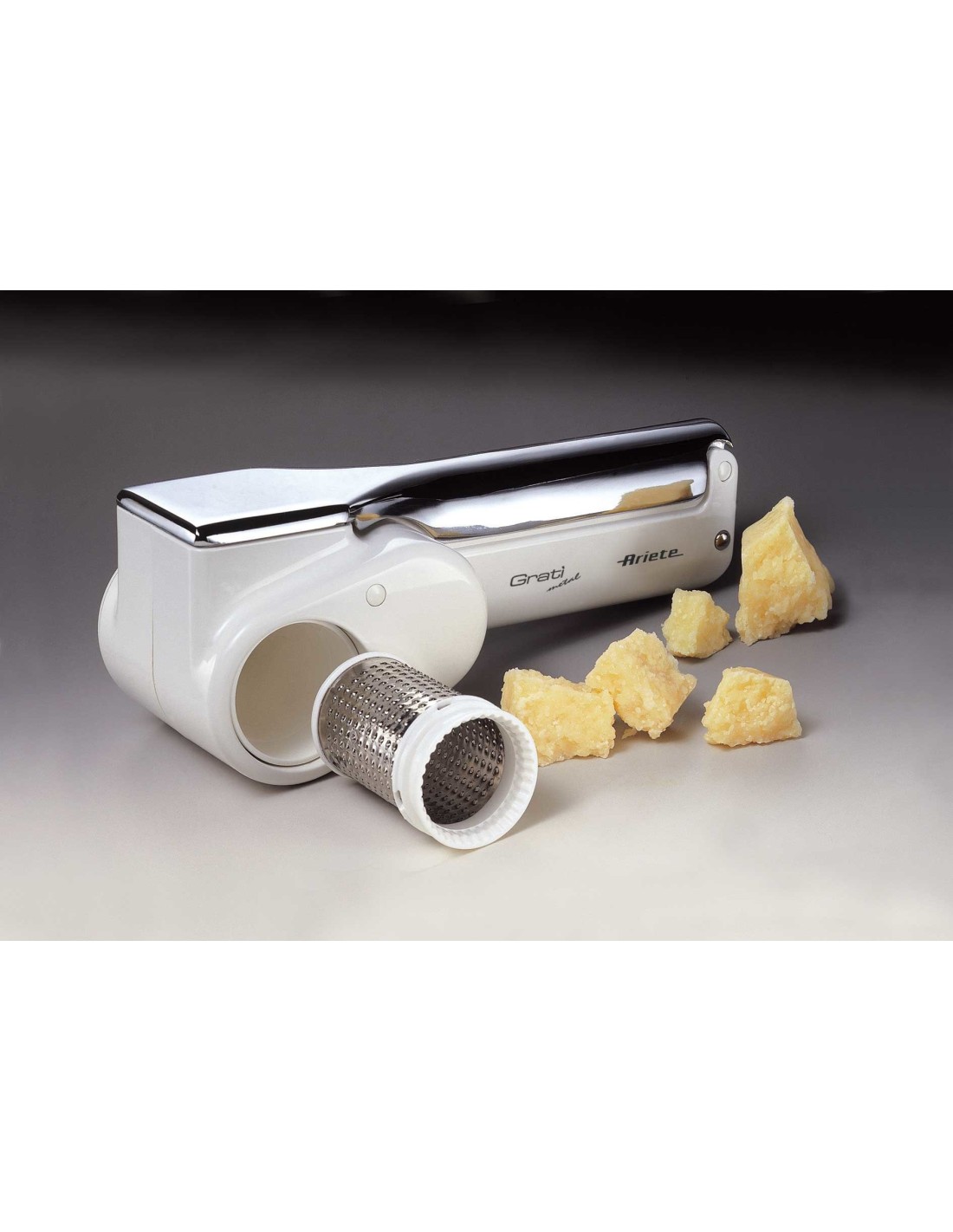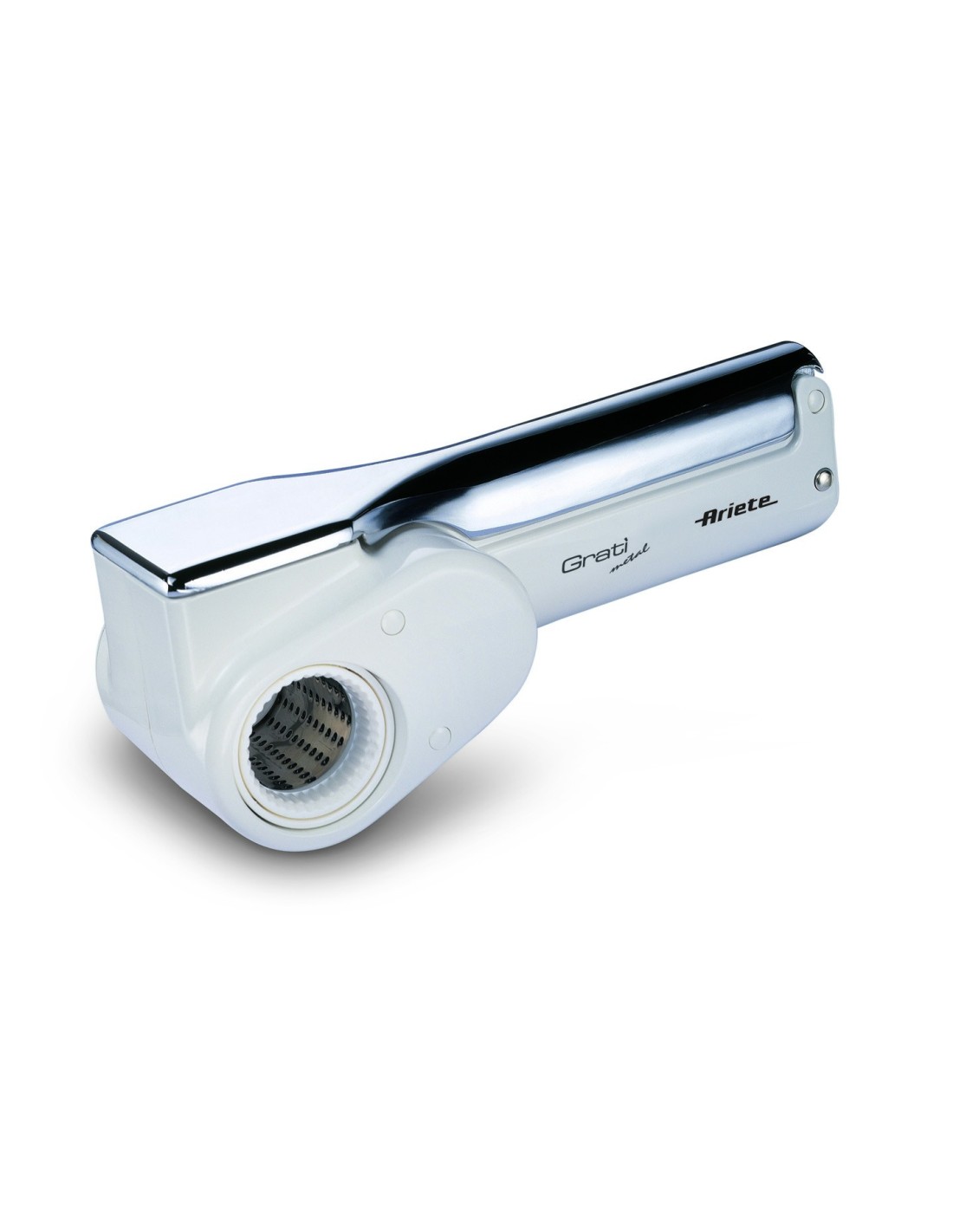 Gratì Metal è la grattugia elettrica di Ariete senza fili, leggera e maneggevole, che ti consente di grattugiare fino a 1kg di formaggio con una sola carica, direttamente sopra un piatto di pasta fumante, ma non solo! Grazie ai 2 rulli in dotazione, è possibile non solo grattugiare formaggio e pane secco, ma anche ridurre in scaglie il cioccolato o la frutta secca, per preparare i tuoi dolci preferiti. Gratì Metal ha il manico in alluminio lucidato, solido e resistente e si aziona semplicemente premendo un pulsante.