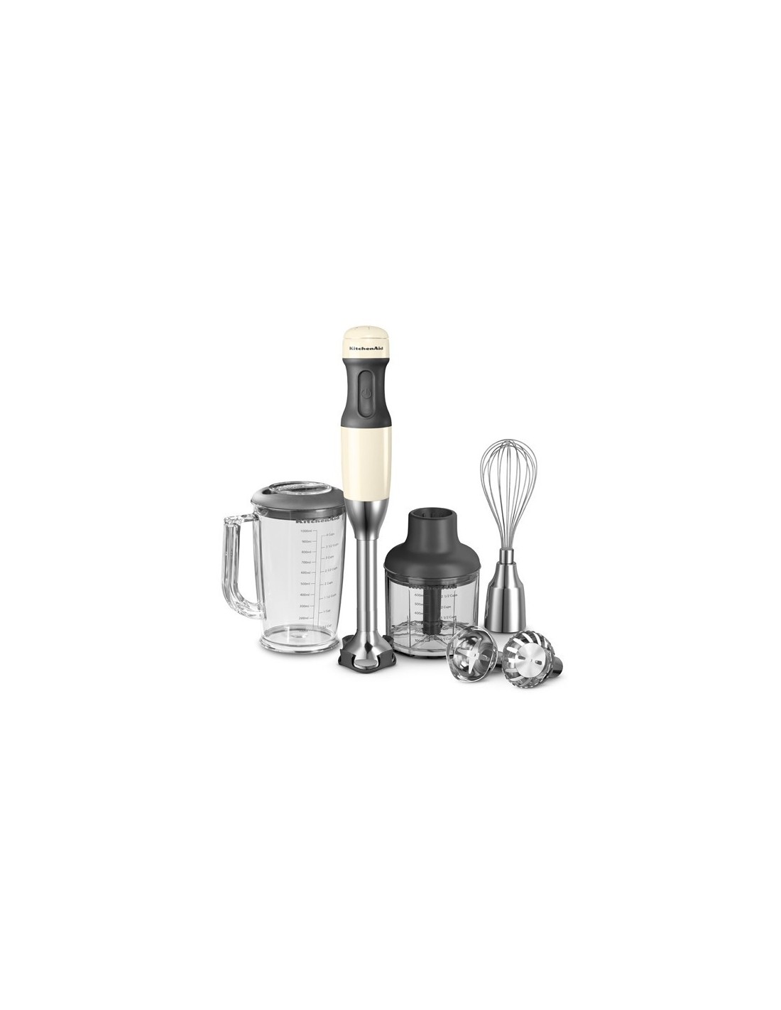KitchenAid 5KHB2571. Velocità (minima) di rotazione: 610 Giri/min, Velocità (massima) di rotazione: 1100 Giri/min. Tipo: Frullatore ad immersione, Colore del prodotto: Crema. Potenza: 180 W, Alimentazione: AC, Tensione di ingresso AC: 220 - 240 V. Larghezza: 65 mm, Profondità: 65 mm, Altezza: 397 mm. Larghezza imballo: 435 mm, Profondità imballo: 145 mm, Altezza imballo: 475 mm
